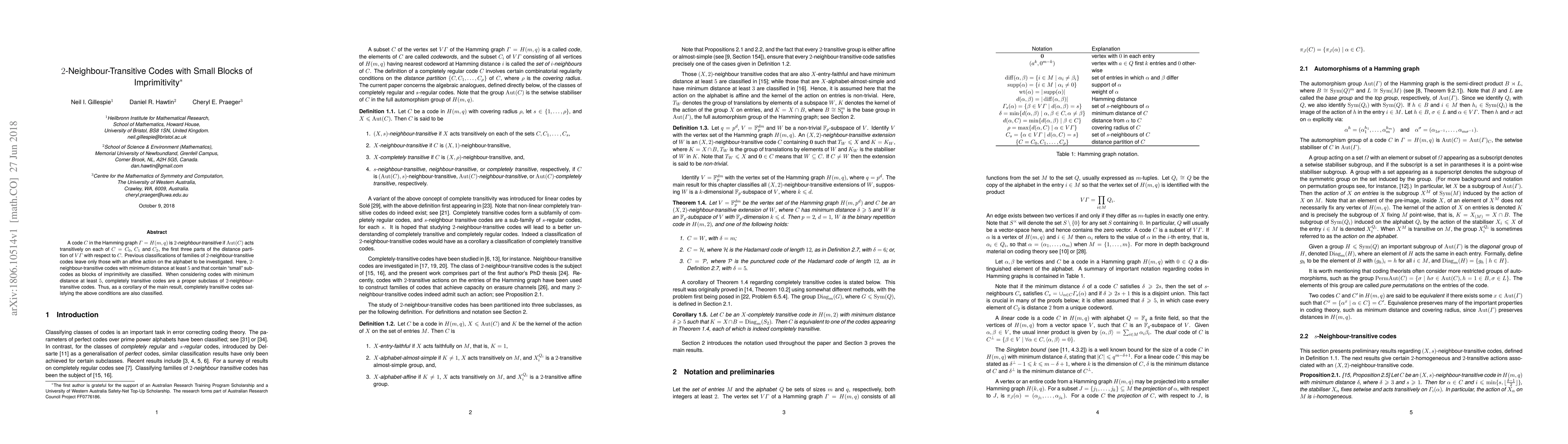 The research classifies 2-neighbour-transitive codes with small blocks of imprimitivity, focusing on codes with minimum distance at least 5, and also classifies completely transitive codes satisfying these conditions as a corollary.
