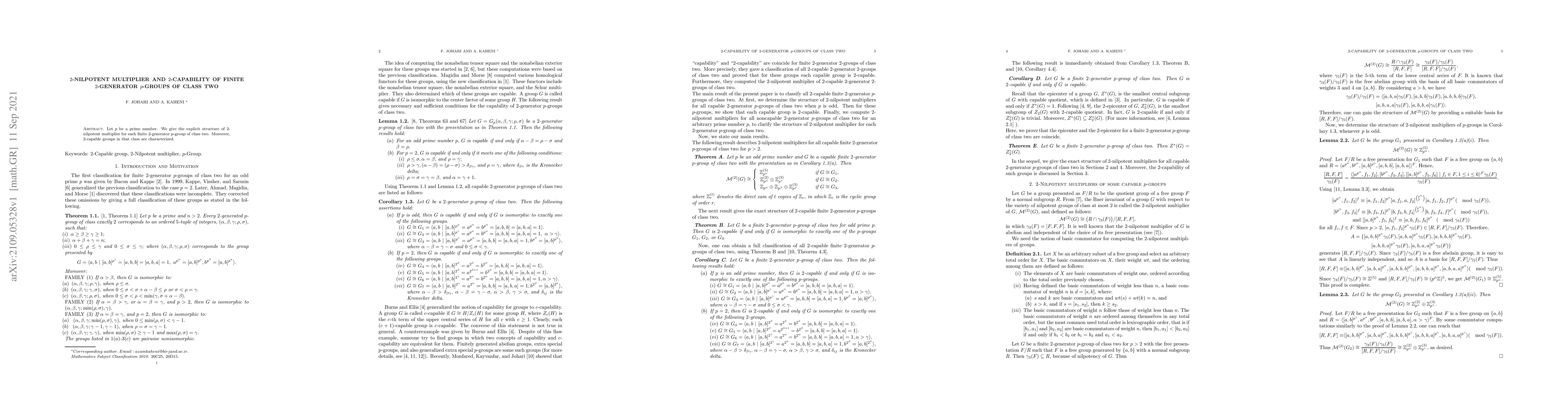 Summary: This paper explicitly determines the structure of the 2-nilpotent multiplier for finite 2-generator p-groups of class two and characterizes the 2-capable groups within this class. The findings provide a detailed understanding of the group's structural properties and capabilities.
