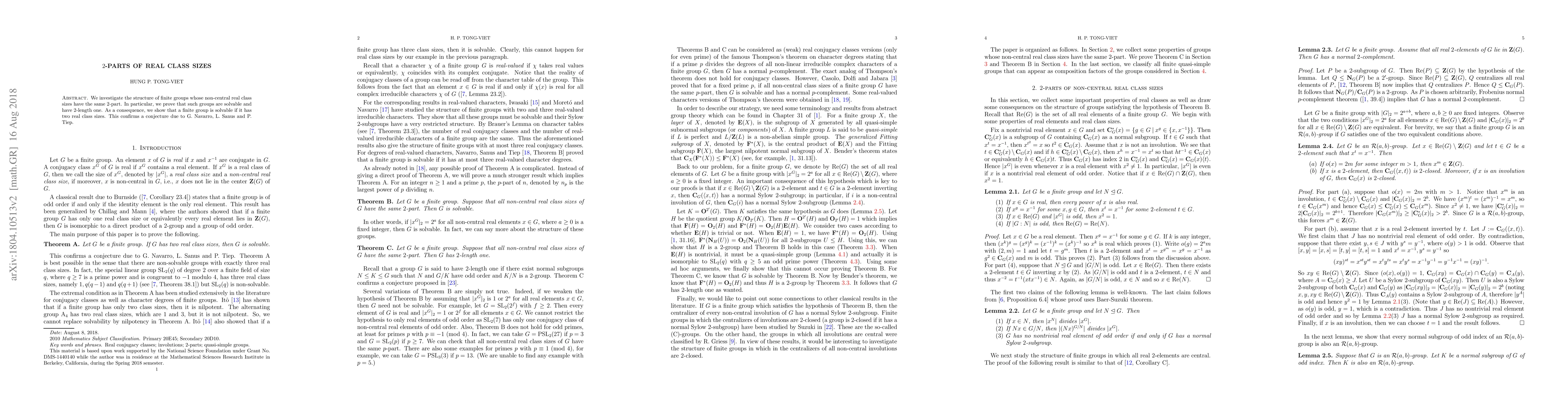 The paper proves that groups with two real class sizes having the same 2-part are solvable, confirming a conjecture and resolving a long-standing problem in group theory. This result has significant implications for the classification of finite groups.