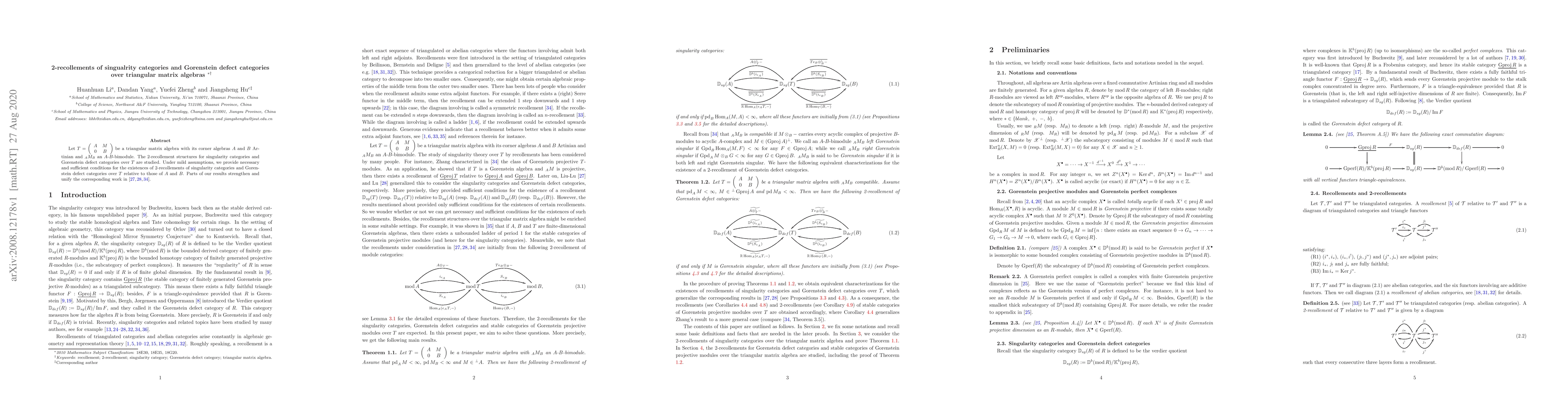 The paper investigates 2-recollement structures for singularity categories and Gorenstein defect categories over a triangular matrix algebra $T=(A,M,0,B)$, providing necessary and sufficient conditions for their existence relative to those of corner algebras $A$ and $B$. The findings strengthen and unify previous results in related studies.