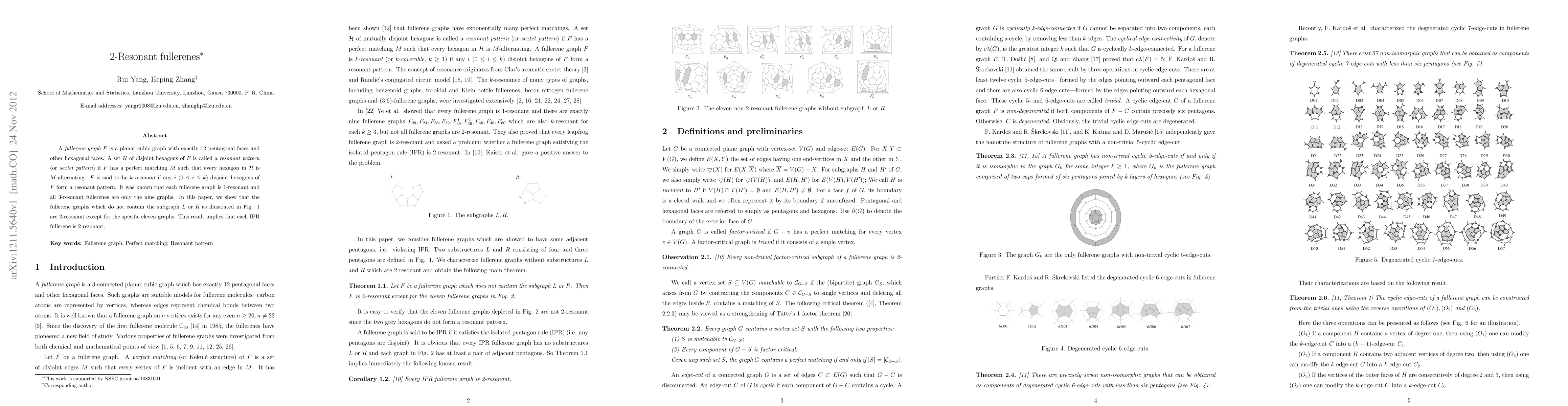 The paper introduces and utilizes the concept of 'resonant patterns' to classify and analyze the structural properties of fullerene graphs, extending previous knowledge on 1-resonant and 3-resonant fullerenes.