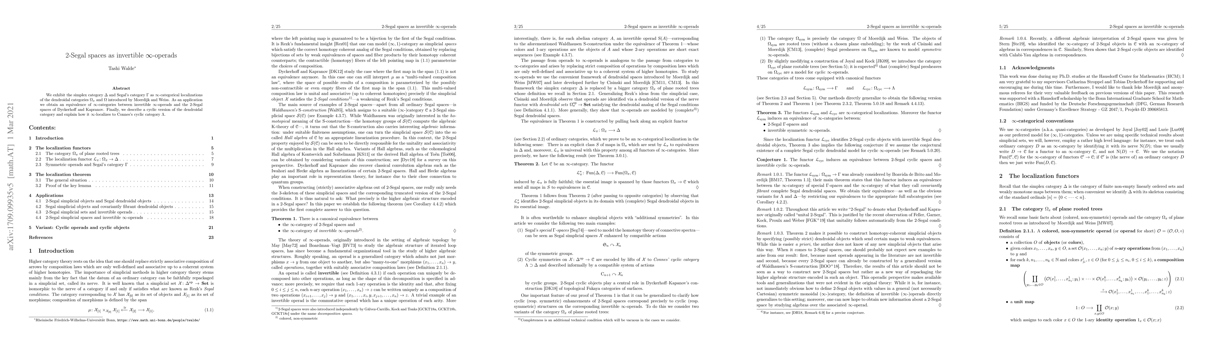 We exhibit the simplex category $\Delta$ and Segal's category $\Gamma$ as $\infty$-categorical localizations of the dendroidal categories $\Omega_\pi$ and $\Omega$ introduced by Moerdijk and Weiss. As an application we obtain an equivalence of $\infty$-categories between invertible $\infty$-operads and the $2$-Segal spaces of Dyckerhoff and Kapranov. Finally, we describe a cyclic version of the dendroidal category and explain how it $\infty$-localizes to Connes's cyclic category $\Lambda$.