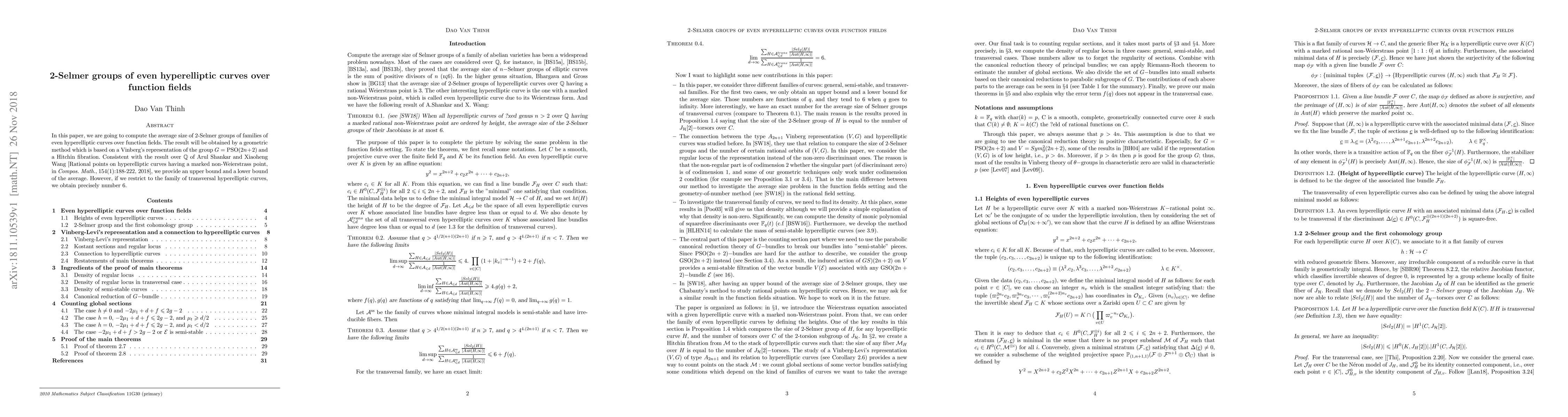 This paper computes the average size of 2-Selmer groups for families of even hyperelliptic curves over function fields using a geometric method based on a Vinberg representation and Hitchin fibration. It provides both upper and lower bounds, aligning with previous results over Q, but specifically finds the exact average size of 6 for transversal hyperelliptic curves.
