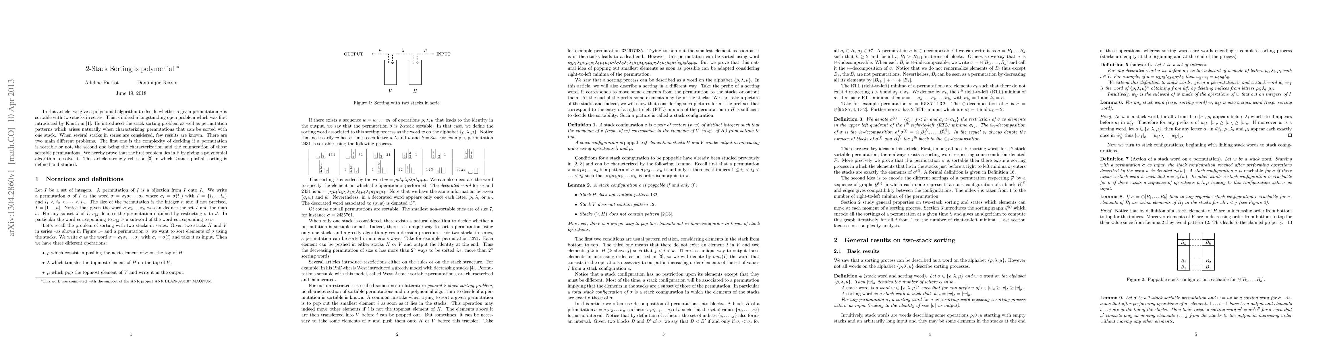 A polynomial algorithm has been found to determine if a given permutation can be sorted using two stacks in series, solving a longstanding open problem.