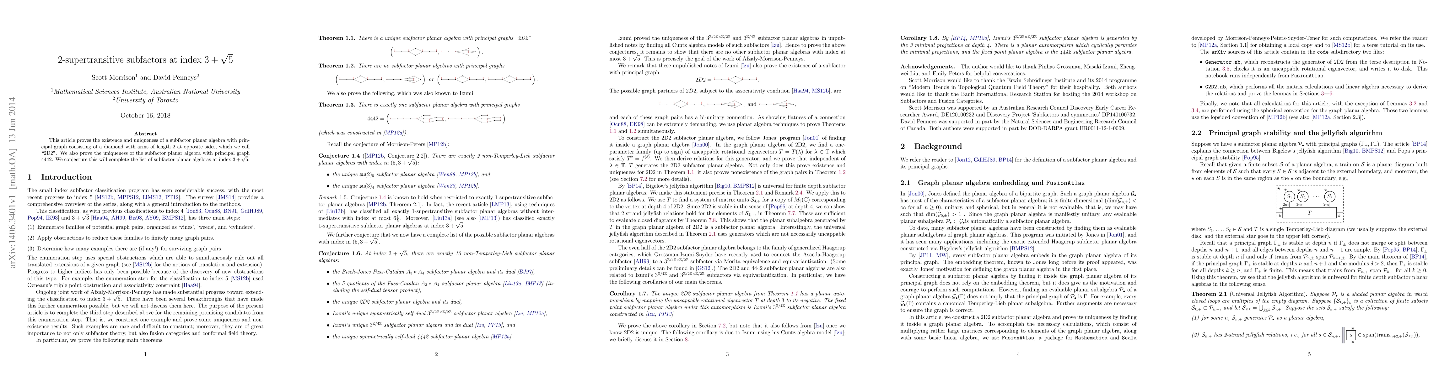 Researchers prove the existence and uniqueness of two subfactor planar algebras with specific principal graphs at index $3+ oot{5}$, a discovery that completes a list of known algebras in this field.