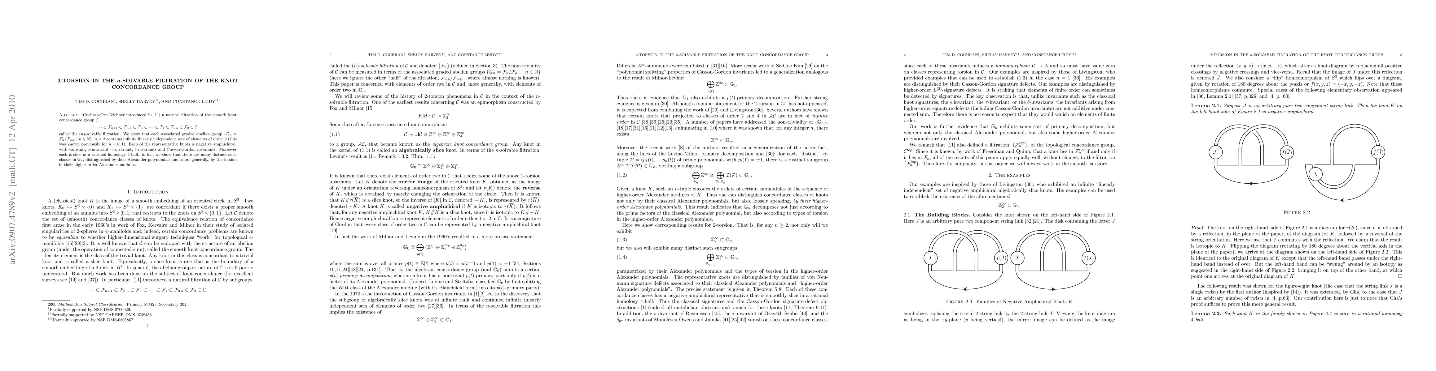 In 1997 Cochran-Orr-Teichner introduced a natural filtration, called the n-solvable filtration, of the smooth knot concordance group, C. Its terms {F_n} are indexed by half integers. We show that each associated graded abelian group G_n=F_n/F_{n.5}, n>1, contains infinite linearly independent sets of elements of order 2 (this was known previously for n=0,1). Each of the representative knots is negative amphichiral, with vanishing s-invariant, tau-invariant, delta-invariants and Casson-Gordon invariants. Moreover each is smoothly slice in a rational homology 4-ball. In fact we show that there are many distinct such classes in G_n, distinguished by their classical Alexander polynomials and by the orders of elements in their higher-order Alexander modules.