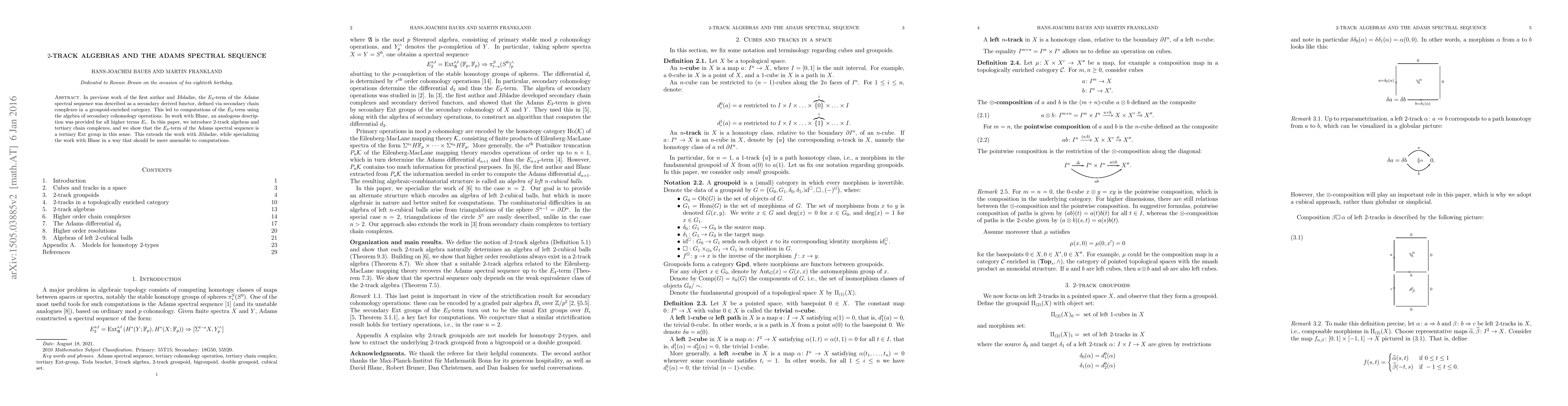 In previous work of the first author and Jibladze, the $E_3$-term of the Adams spectral sequence was described as a secondary derived functor, defined via secondary chain complexes in a groupoid-enriched category. This led to computations of the $E_3$-term using the algebra of secondary cohomology operations. In work with Blanc, an analogous description was provided for all higher terms $E_m$. In this paper, we introduce $2$-track algebras and tertiary chain complexes, and we show that the $E_4$-term of the Adams spectral sequence is a tertiary Ext group in this sense. This extends the work with Jibladze, while specializing the work with Blanc in a way that should be more amenable to computations.