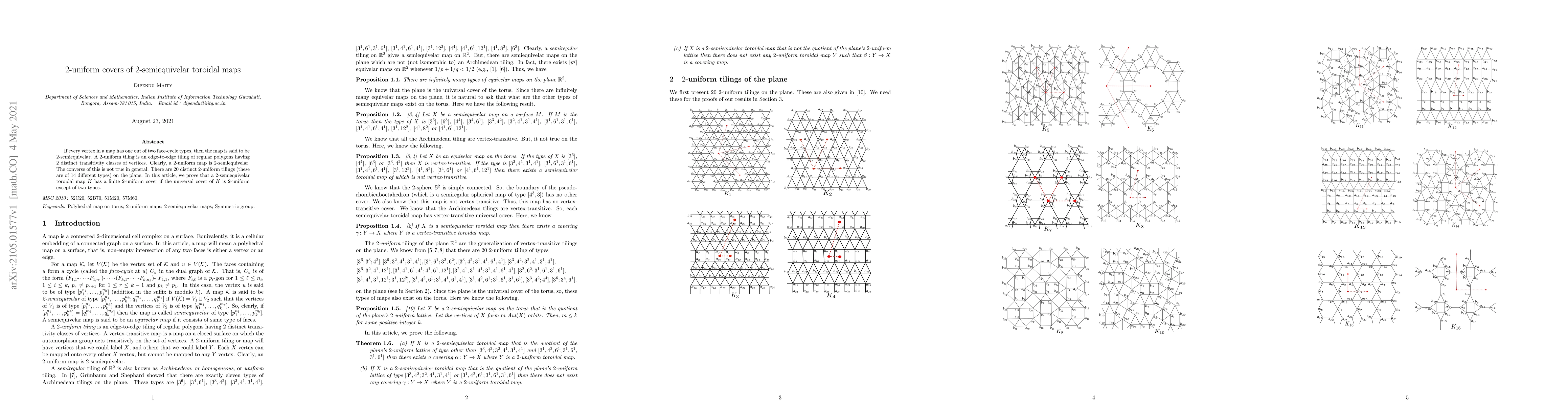 If every vertex in a map has one out of two face-cycle types, then the map is said to be $2$-semiequivelar. A 2-uniform tiling is an edge-to-edge tiling of regular polygons having $2$ distinct transitivity classes of vertices. Clearly, a $2$-uniform map is $2$-semiequivelar. The converse of this is not true in general. There are 20 distinct 2-uniform tilings (these are of $14$ different types) on the plane. In this article, we prove that a $2$-semiequivelar toroidal map $K$ has a finite $2$-uniform cover if the universal cover of $K$ is $2$-uniform except of two types.