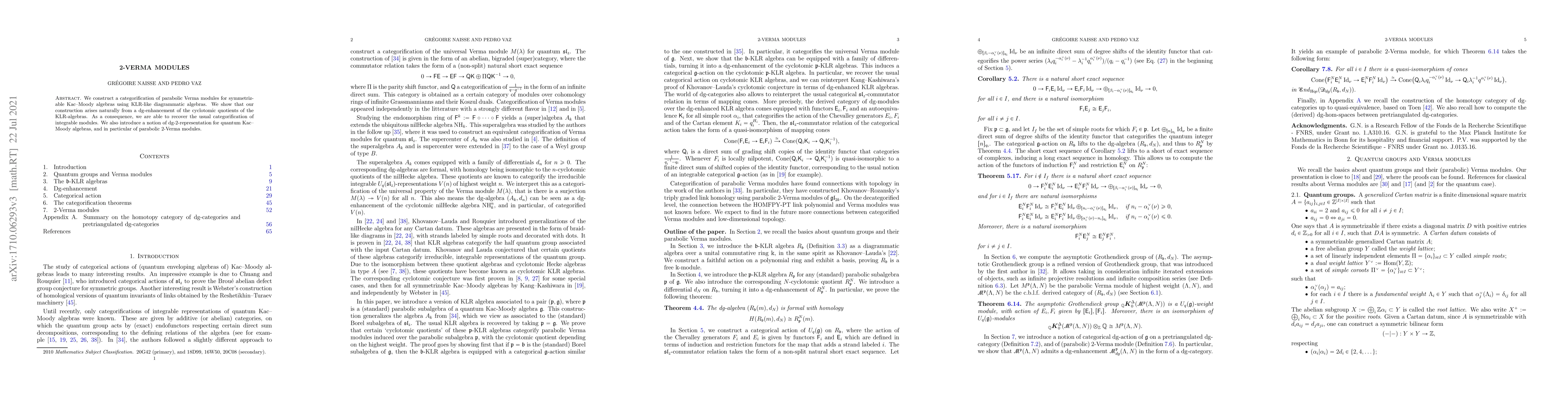The paper constructs a categorification of parabolic Verma modules for symmetrizable Kac-Moody algebras using KLR-like diagrammatic algebras and demonstrates its emergence from a dg-enhancement of cyclotomic quotients of KLR algebras. It introduces a dg-2-representation notion for quantum Kac-Moody algebras, specifically for parabolic 2-Verma modules.