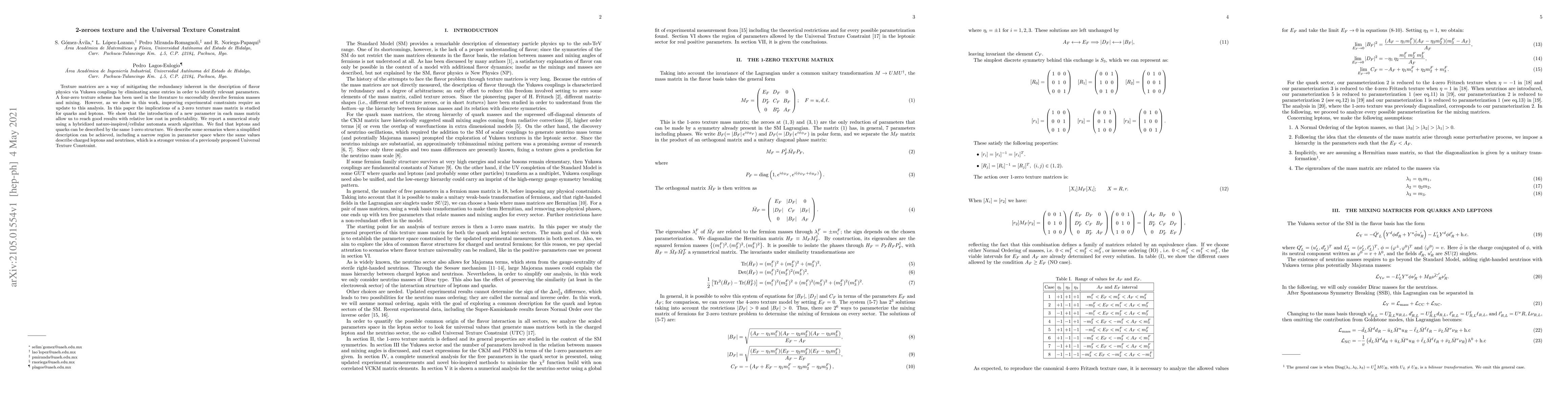 Texture matrices are a way of mitigating the redundancy inherent in the description of flavor physics via Yukawa couplings by eliminating some entries in order to identify relevant parameters. A four-zero texture scheme has been used in the literature to successfully describe fermion masses and mixing. However, as we show in this work, improving experimental constraints require an update to this analysis. In this paper the implications of a 2-zero texture mass matrix is studied for quarks and leptons. We show that the introduction of a new parameter in each mass matrix allow us to reach good results with relative low cost in predictability. We report a numerical study using a hybridized nature-inspired/cellular automata search algorithm. We find that leptons and quarks can be described by the same 1-zero structure. We describe some scenarios where a simplified description can be achieved, including a narrow region in parameter space where the same values describe charged leptons and neutrinos, which is a stronger version of a previously proposed Universal Texture Constraint.