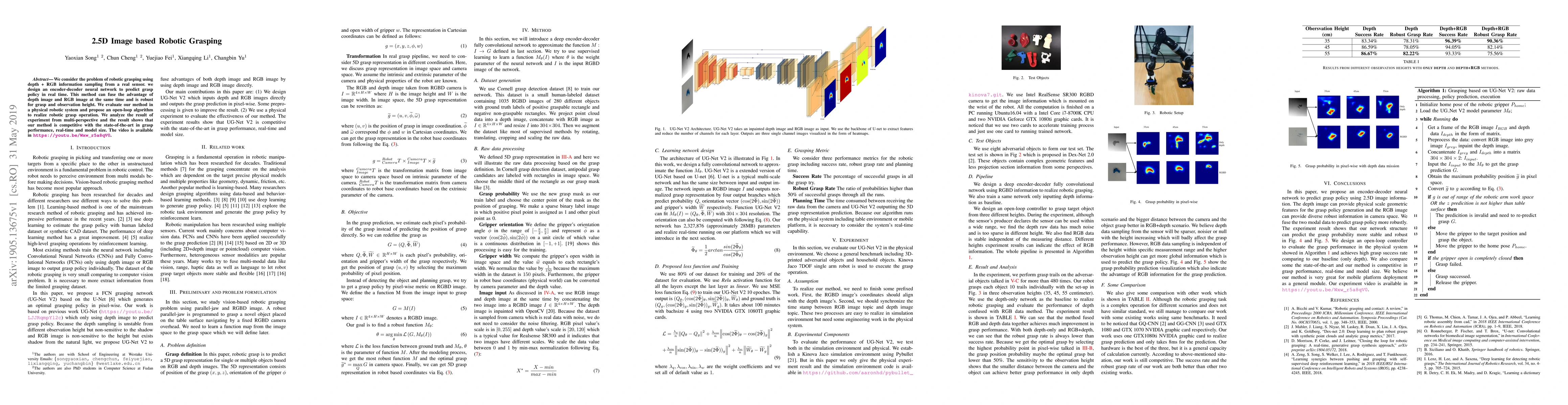 We consider the problem of robotic grasping using depth + RGB information sampling from a real sensor. we design an encoder-decoder neural network to predict grasp policy in real time. This method can fuse the advantage of depth image and RGB image at the same time and is robust for grasp and observation height.We evaluate our method in a physical robotic system and propose an open-loop algorithm to realize robotic grasp operation. We analyze the result of experiment from multi-perspective and the result shows that our method is competitive with the state-of-the-art in grasp performance, real-time and model size. The video is available in https://youtu.be/Wxw_r5a8qV0