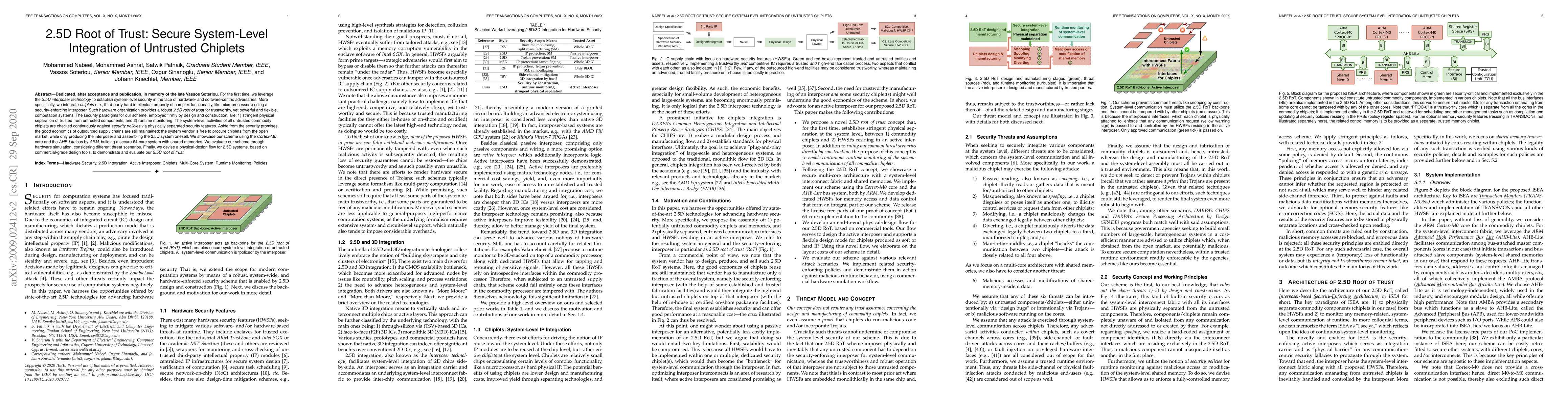 Researchers developed a 2.5D root of trust for secure system-level integration of untrusted chiplets using an interposer technology, providing robust security through physical separation and runtime monitoring.