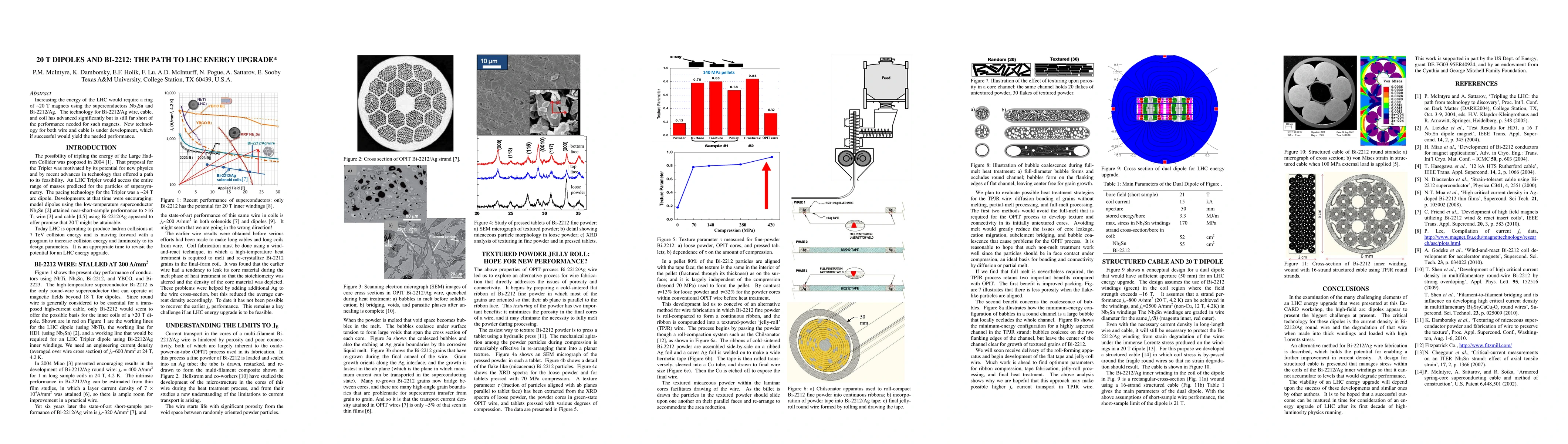 Increasing the energy of the LHC would require a ring of \sim20 T magnets using the superconductors Nb3Sn and Bi-2212/Ag. The technology for Bi-2212/Ag wire, cable, and coil has advanced significantly but is still far short of the performance needed for such magnets. New technol-ogy for both wire and cable is under development, which if successful would yield the needed performance.