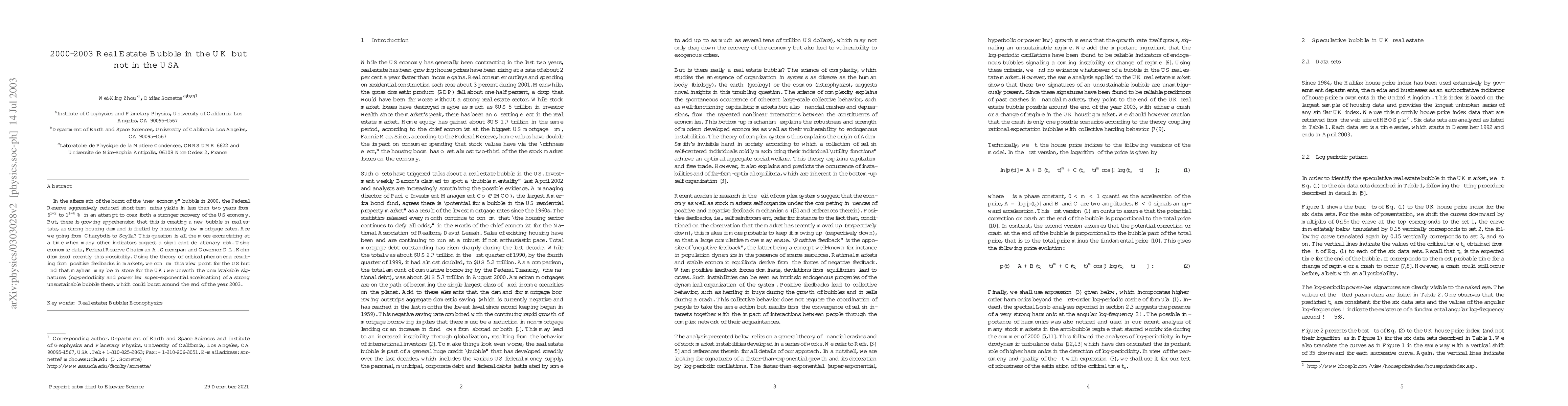 Researchers confirm a UK real estate bubble based on log-periodicity and power law super-exponential acceleration, contrasting with no such bubble in the US, which they attribute to aggressive interest rate cuts.