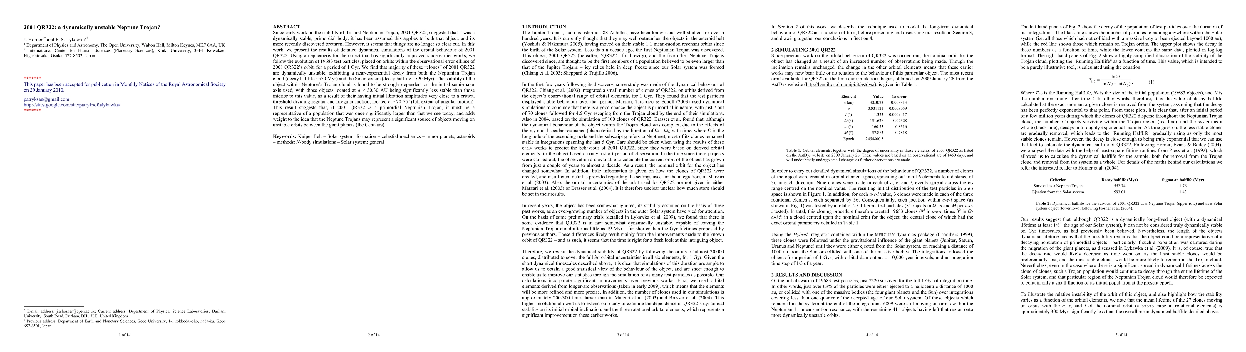 This research reveals that 2001 QR322, initially thought to be a stable Neptune Trojan, is likely dynamically unstable, showing near-exponential decay from both the Trojan cloud and the Solar system over 550-590 Myr. The stability is highly dependent on the initial semi-major axis, suggesting a once larger population of Trojans.