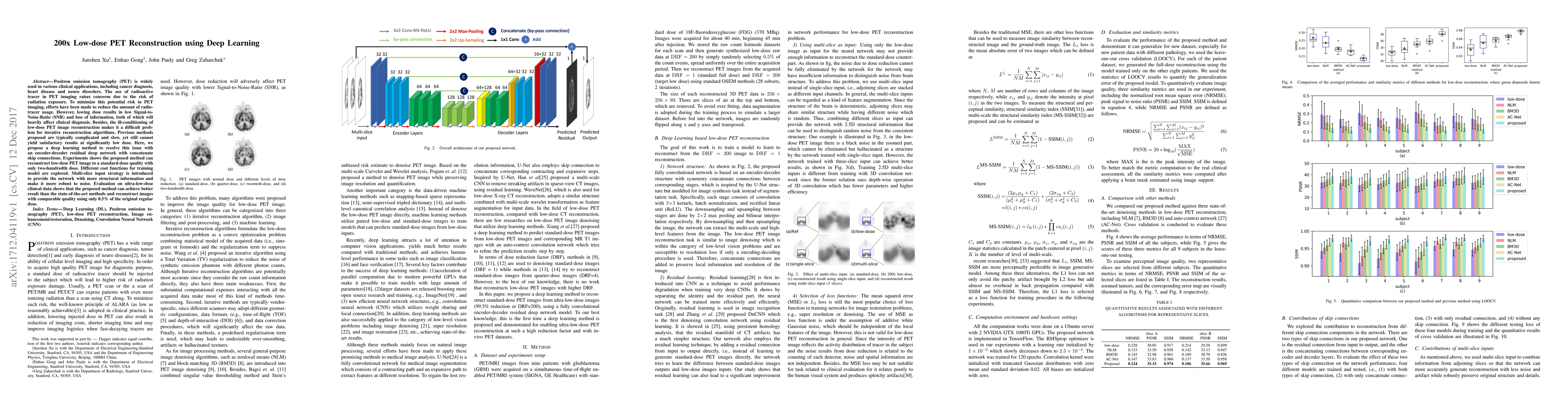 This paper proposes a deep learning method using an encoder-decoder residual network with skip connections to reconstruct low-dose PET images to standard-dose quality, significantly reducing the required radioactive tracer dose. The method achieves better results than state-of-the-art techniques using only 0.5% of the original dose.