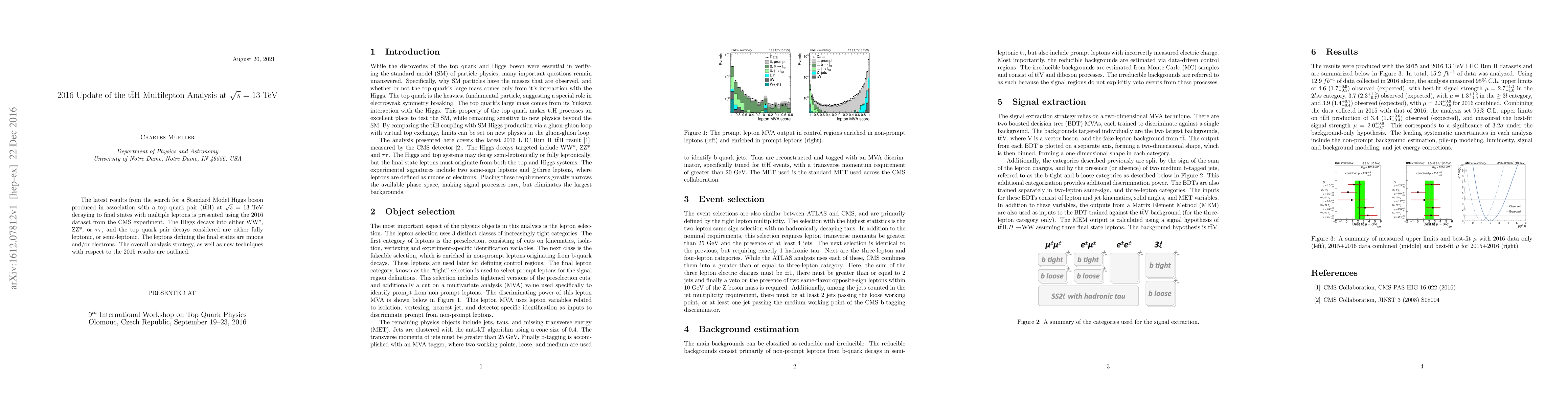 The latest results from the search for a Standard Model Higgs boson produced in association with a top quark pair ($\mathrm{t\bar{t}H}$) at $\sqrt{s} = 13$ TeV decaying to final states with multiple leptons is presented using the 2016 dataset from the CMS experiment. The Higgs decays into either WW*, ZZ*, or $\tau\tau$, and the top quark pair decays considered are either fully leptonic, or semi-leptonic. The leptons defining the final states are muons and/or electrons. The overall analysis strategy, as well as new techniques with respect to the 2015 results are outlined.