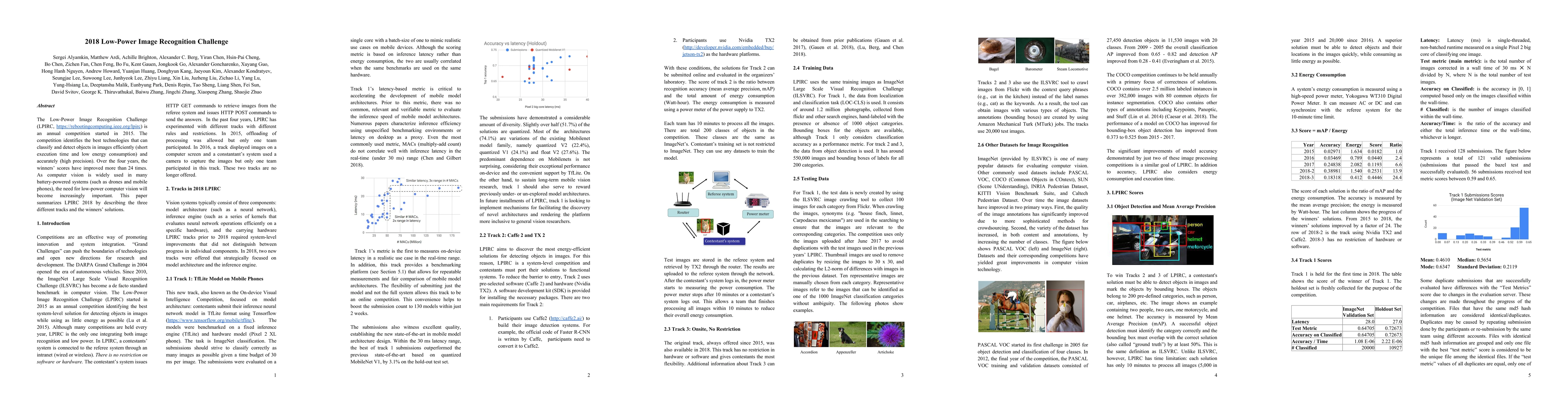 The 2018 Low-Power Image Recognition Challenge (LPIRC) showcased advancements in low-power, high-precision image classification and detection, with winners' scores improving over 24 times since the competition's inception in 2015. The paper summarizes the competition's three tracks and the winning solutions.