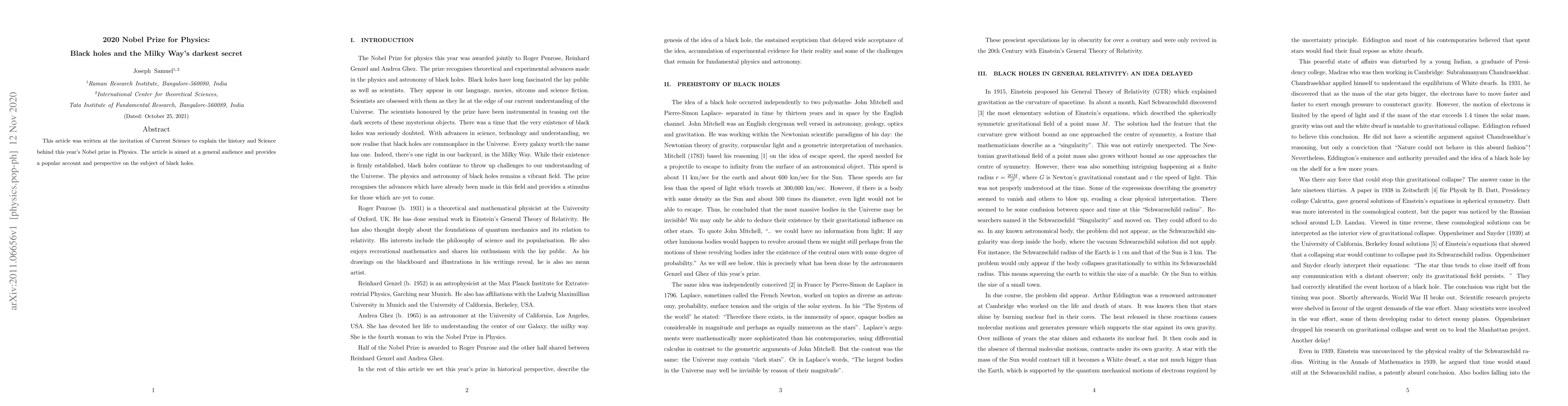 This article was written at the invitation of Current Science to explain the history and Science behind this year's Nobel prize in Physics. The article is aimed at a general audience and provides a popular account and perspective on the subject of black holes.