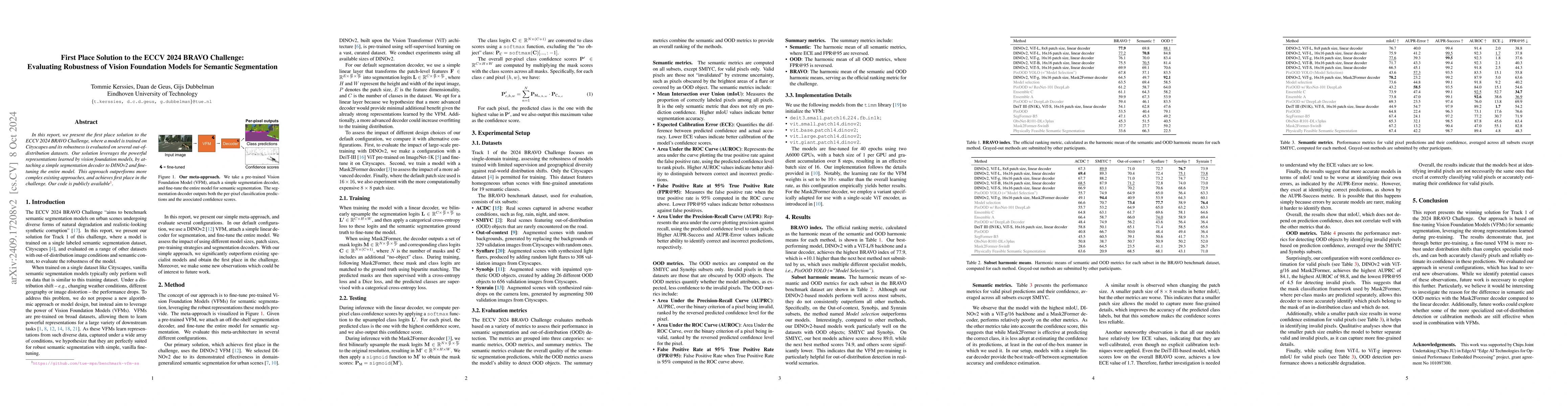This report details the winning solution for Track 1 of the 2024 BRAVO Challenge, which evaluates the robustness of vision foundation models for semantic segmentation. The team utilized DINOv2, fine-tuned with a segmentation decoder, achieving top performance by leveraging powerful learned representations.