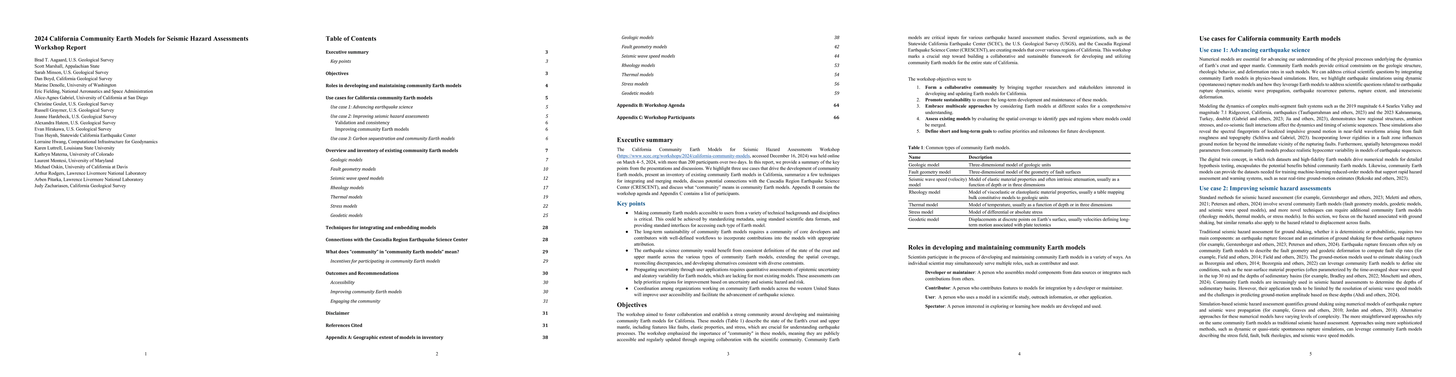 The workshop report presents a comprehensive overview of existing geodetic models in California, integration techniques, and the concept of 'community' in Earth model development, fostering collaboration and standardization.
