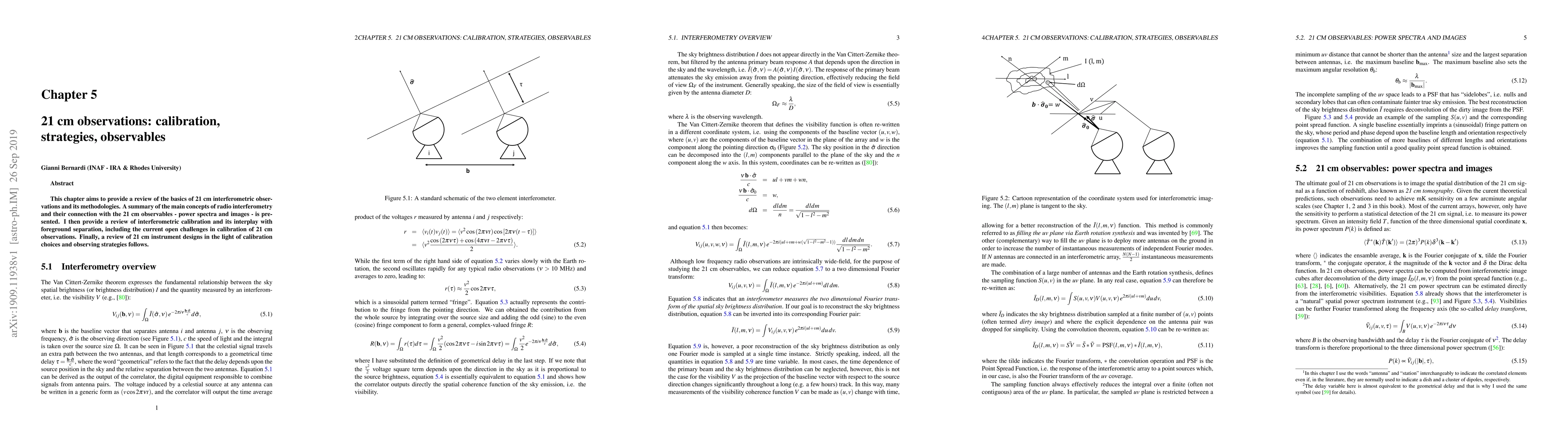 This paper reviews the fundamentals of 21 cm interferometric observations, focusing on radio interferometry, calibration methods, and foreground separation challenges. It also discusses instrument design strategies in the context of calibration and observational goals.