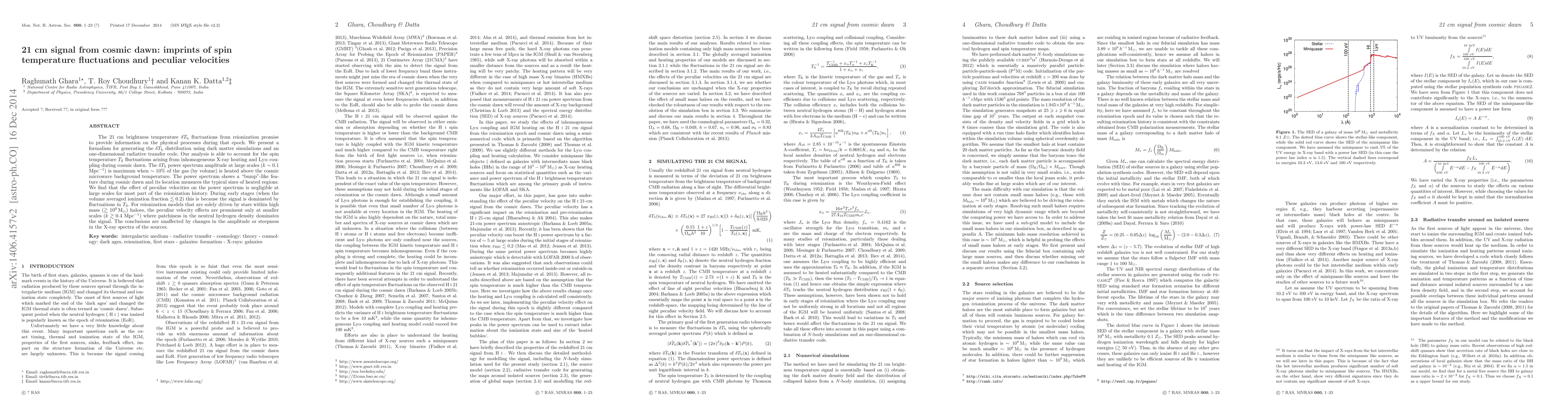 The 21 cm brightness temperature $\delta T_{\rm b}$ fluctuations from reionization promise to provide information on the physical processes during that epoch. We present a formalism for generating the $\delta T_{\rm b}$ distribution using dark matter simulations and an one-dimensional radiative transfer code. Our analysis is able to account for the spin temperature $T_{\rm S}$ fluctuations arising from inhomogeneous X-ray heating and Ly$\alpha$ coupling during cosmic dawn. The $\delta T_{\rm b}$ power spectrum amplitude at large scales ($k \sim 0.1$ Mpc$^{-1}$) is maximum when $\sim 10\%$ of the gas (by volume) is heated above the CMB temperature. The power spectrum shows a "bump"-like feature during cosmic dawn and its location measures the typical sizes of heated regions. We find that the effect of peculiar velocities on the power spectrum is negligible at large scales for most part of the reionization history. During early stages (when the volume averaged ionization fraction $\lesssim 0.2$) this is because the signal is dominated by fluctuations in $T_{\rm S}$. For reionization models that are solely driven by stars within high mass ($\gtrsim 10^9\, \rm M_{\odot}$) haloes, the peculiar velocity effects are prominent only at smaller scales ($k \gtrsim 0.4$ Mpc$^{-1}$) where patchiness in the neutral hydrogen density dominates the signal. The conclusions are unaffected by changes in the amplitude or steepness in the X-ray spectra of the sources.