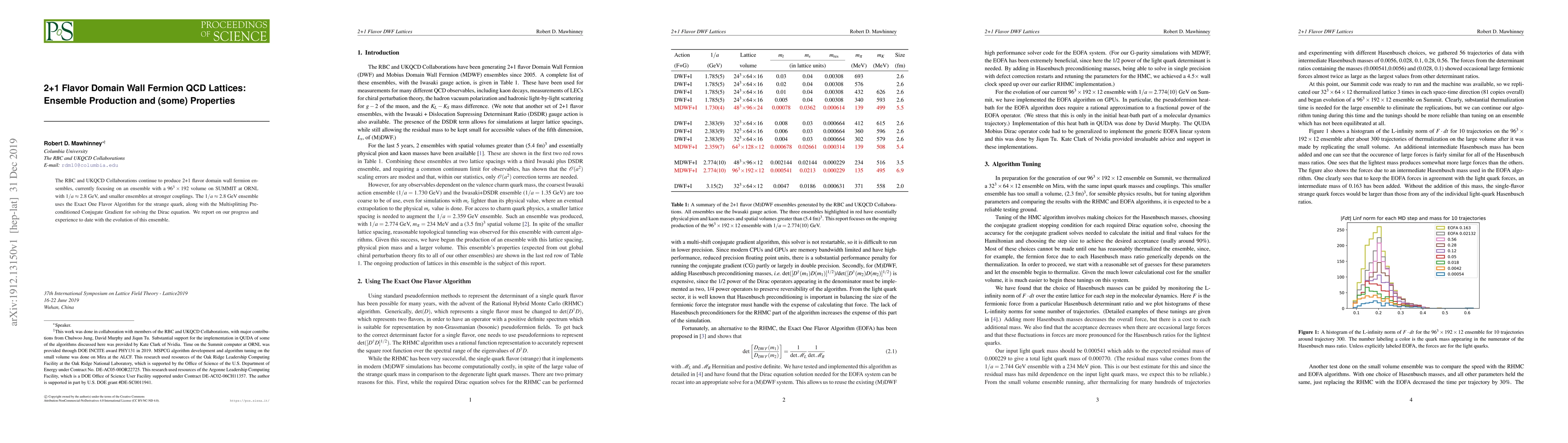 Researchers produced a 2+1 flavor domain wall fermion ensemble with a large volume, using advanced algorithms to simulate the strong nuclear force at high energies. The study aims to explore properties of this ensemble for further understanding of Quantum Chromodynamics (QCD).