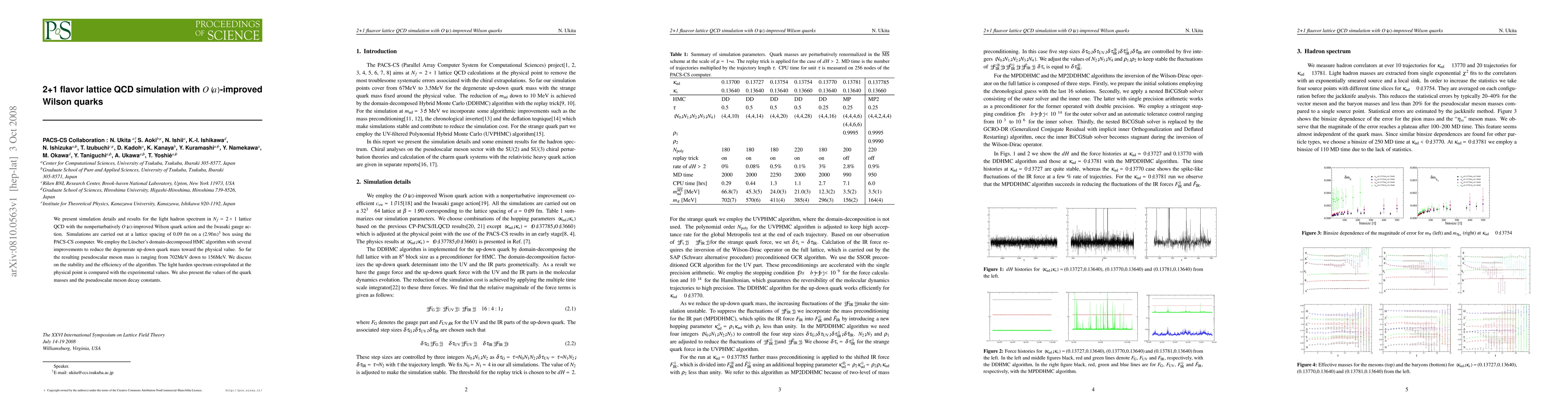 Researchers simulated the light hadron spectrum in 2+1 flavor lattice QCD using an O(a)-improved Wilson quark action, achieving pseudoscalar meson masses ranging from 702MeV to 156MeV.