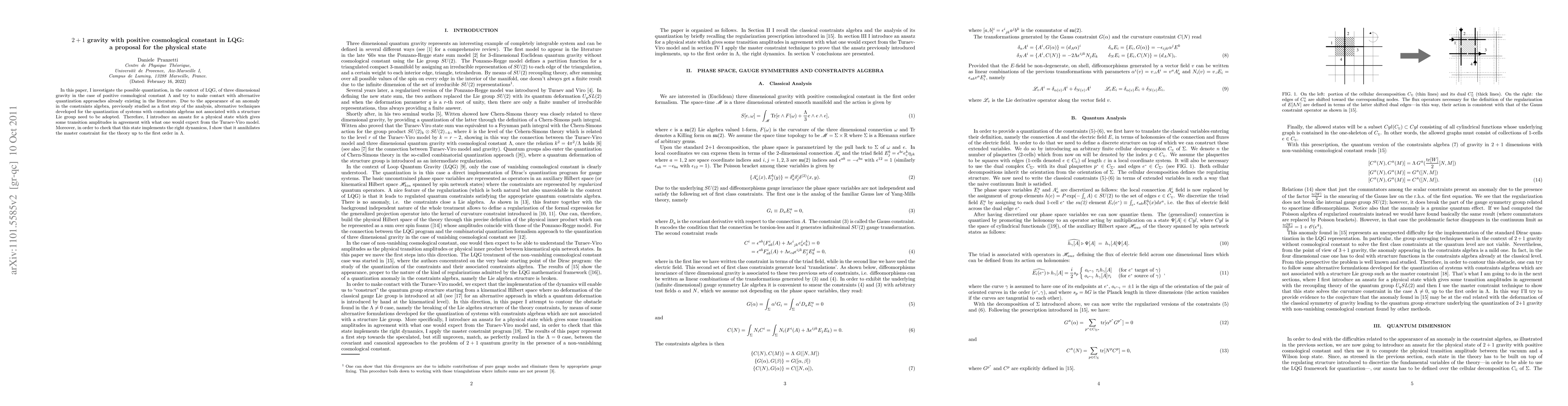 In this paper, I investigate the possible quantization, in the context of LQG, of three dimensional gravity in the case of positive cosmological constant {\Lambda} and try to make contact with alternative quantization approaches already existing in the literature. Due to the appearance of an anomaly in the constraints algebra, previously studied as a first step of the analysis, alternative techniques developed for the quantization of systems with constraints algebras not associated with a structure Lie group need to be adopted. Therefore, I introduce an ansatz for a physical state which gives some transition amplitudes in agreement with what one would expect from the Turaev-Viro model. Moreover, in order to check that this state implements the right dynamicss, I show that it annihilates the master constraint for the theory up to the first order in {\Lambda}.