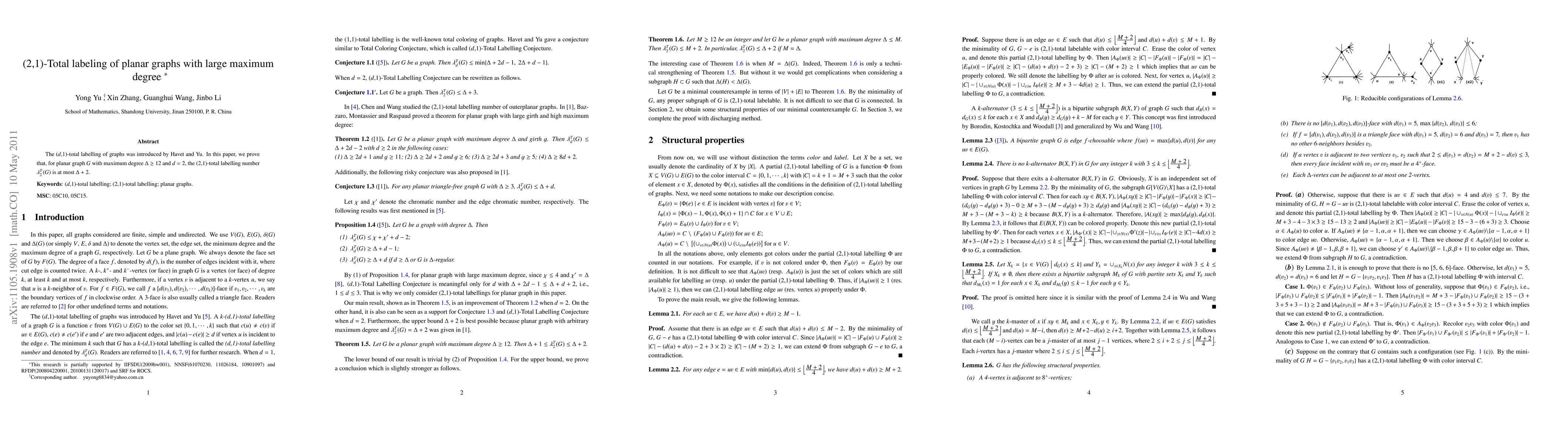 The ($d$,1)-total labelling of graphs was introduced by Havet and Yu. In this paper, we prove that, for planar graph $G$ with maximum degree $\Delta\geq12$ and $d=2$, the (2,1)-total labelling number $\lambda_2^T(G)$ is at most $\Delta+2$.