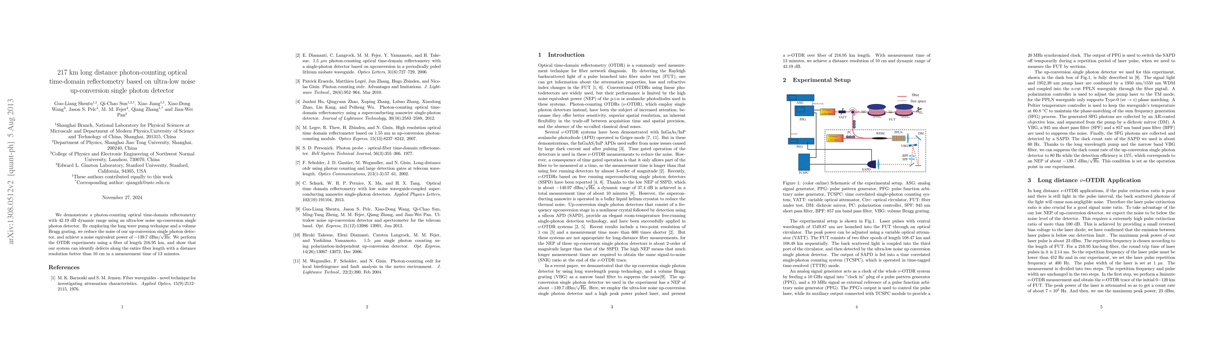This research demonstrates a 217 km long-distance photon-counting optical time-domain reflectometry (OTDR) system using an ultra-low noise up-conversion single photon detector, achieving a 42.19 dB dynamic range and identifying fiber defects with a resolution of better than 10 cm in 13 minutes. The system's performance is enhanced by a long wave pump technique and a volume Bragg grating to minimize detector noise.