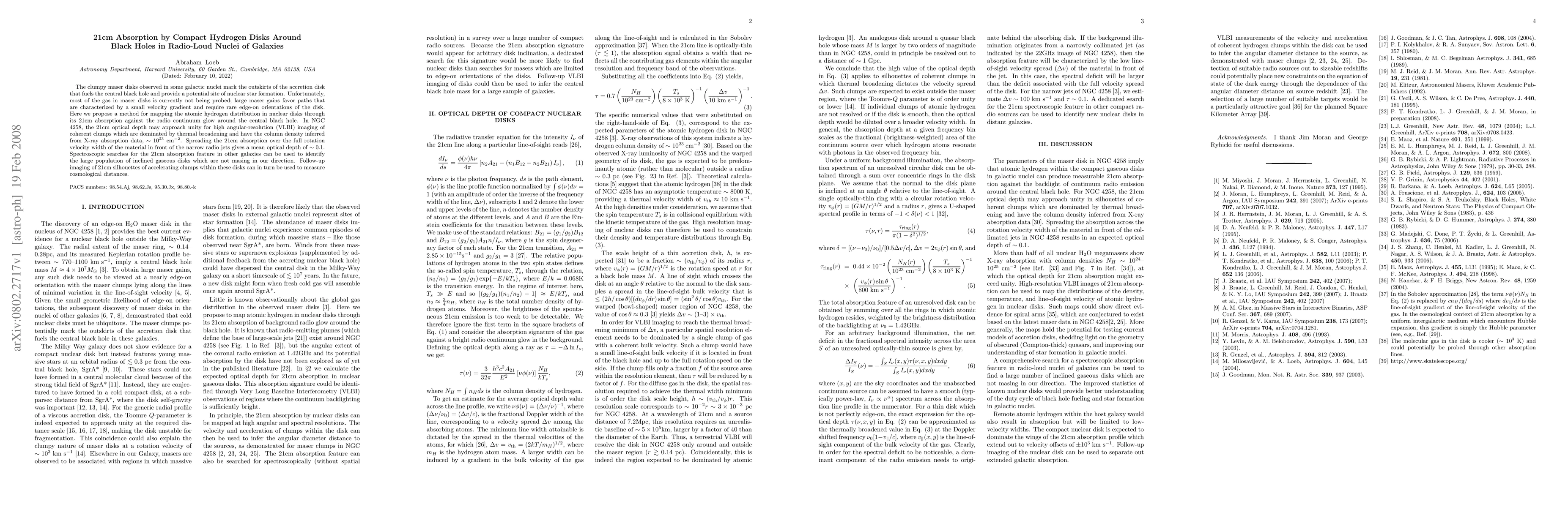 The clumpy maser disks observed in some galactic nuclei mark the outskirts of the accretion disk that fuels the central black hole and provide a potential site of nuclear star formation. Unfortunately, most of the gas in maser disks is currently not being probed; large maser gains favor paths that are characterized by a small velocity gradient and require rare edge-on orientations of the disk. Here we propose a method for mapping the atomic hydrogen distribution in nuclear disks through its 21cm absorption against the radio continuum glow around the central black hole. In NGC 4258, the 21cm optical depth may approach unity for high angular-resolution (VLBI) imaging of coherent clumps which are dominated by thermal broadening and have the column density inferred from X-ray absorption data, ~10^{23}/cm^2. Spreading the 21cm absorption over the full rotation velocity width of the material in front of the narrow radio jets gives a mean optical depth of ~0.1. Spectroscopic searches for the 21cm absorption feature in other galaxies can be used to identify the large population of inclined gaseous disks which are not masing in our direction. Follow-up imaging of 21cm silhouettes of accelerating clumps within these disks can in turn be used to measure cosmological distances.
