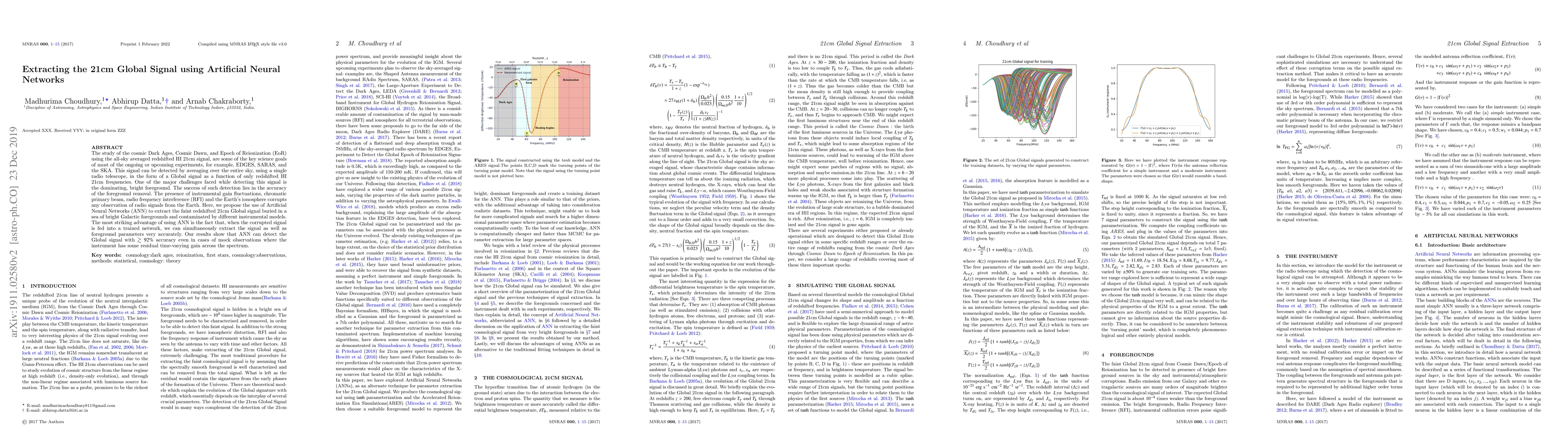 This paper proposes using Artificial Neural Networks (ANN) to extract the faint 21cm Global signal from bright Galactic foregrounds and instrumental noise. ANN can simultaneously detect the signal and foreground parameters with $\gtrsim 92 \%$ accuracy, even with residual time-varying gain in mock observations.