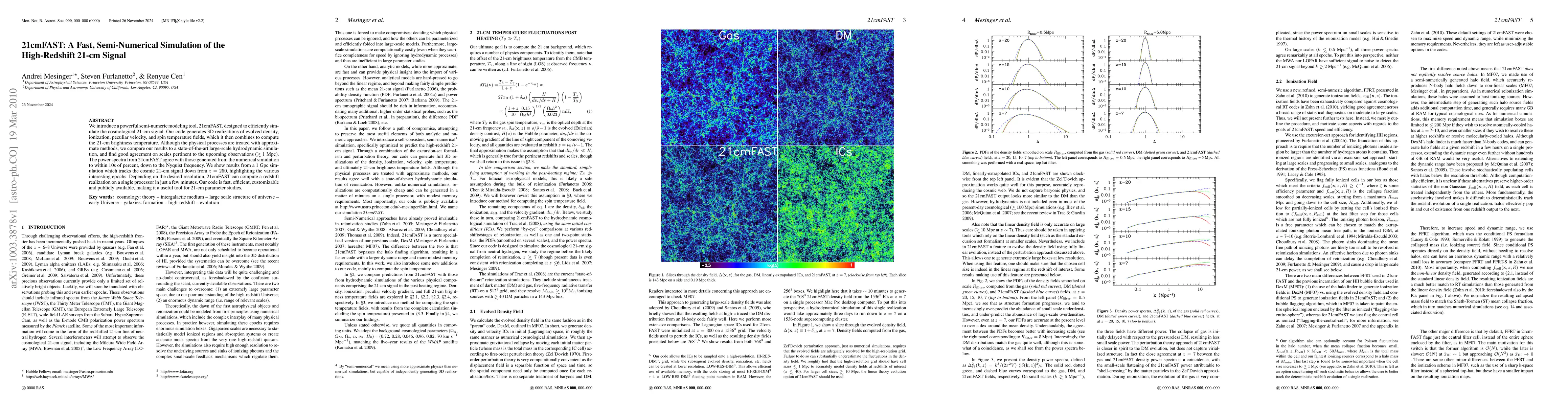 We introduce a powerful semi-numeric modeling tool, 21cmFAST, designed to efficiently simulate the cosmological 21-cm signal. Our code generates 3D realizations of evolved density, ionization, peculiar velocity, and spin temperature fields, which it then combines to compute the 21-cm brightness temperature. Although the physical processes are treated with approximate methods, we compare our results to a state-of-the-art large-scale hydrodynamic simulation, and find good agreement on scales pertinent to the upcoming observations (>~ 1 Mpc). The power spectra from 21cmFAST agree with those generated from the numerical simulation to within 10s of percent, down to the Nyquist frequency. We show results from a 1 Gpc simulation which tracks the cosmic 21-cm signal down from z=250, highlighting the various interesting epochs. Depending on the desired resolution, 21cmFAST can compute a redshift realization on a single processor in just a few minutes. Our code is fast, efficient, customizable and publicly available, making it a useful tool for 21-cm parameter studies.