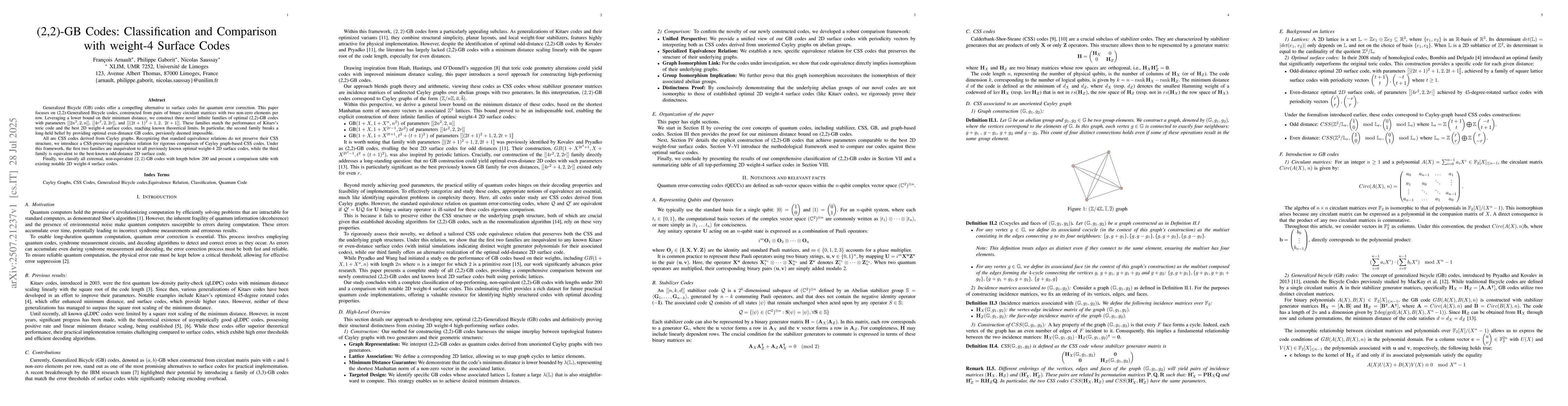 Generalized Bicycle (GB) codes offer a compelling alternative to surface codes for quantum error correction. This paper focuses on (2,2)-Generalized Bicycle codes, constructed from pairs of binary circulant matrices with two non-zero elements per row. Leveraging a lower bound on their minimum distance, we construct three novel infinite families of optimal (2,2)-GB codes with parameters [[ 2n^2, 2, n ]], [[ 4r^2, 2, 2r ]], and [[(2t + 1)^2 + 1, 2, 2t + 1 ]]. These families match the performance of Kitaev's toric code and the best 2D weight-4 surface codes, reaching known theoretical limits. In particular, the second family breaks a long-held belief by providing optimal even-distance GB codes, previously deemed impossible. All are CSS codes derived from Cayley graphs. Recognizing that standard equivalence relations do not preserve their CSS structure, we introduce a CSS-preserving equivalence relation for rigorous comparison of Cayley graph-based CSS codes. Under this framework, the first two families are inequivalent to all previously known optimal weight-4 2D surface codes, while the third family is equivalent to the best-known odd-distance 2D surface code. Finally, we classify all extremal, non-equivalent (2,2)-GB codes with length below 200 and present a comparison table with existing notable 2D weight-4 surface codes.