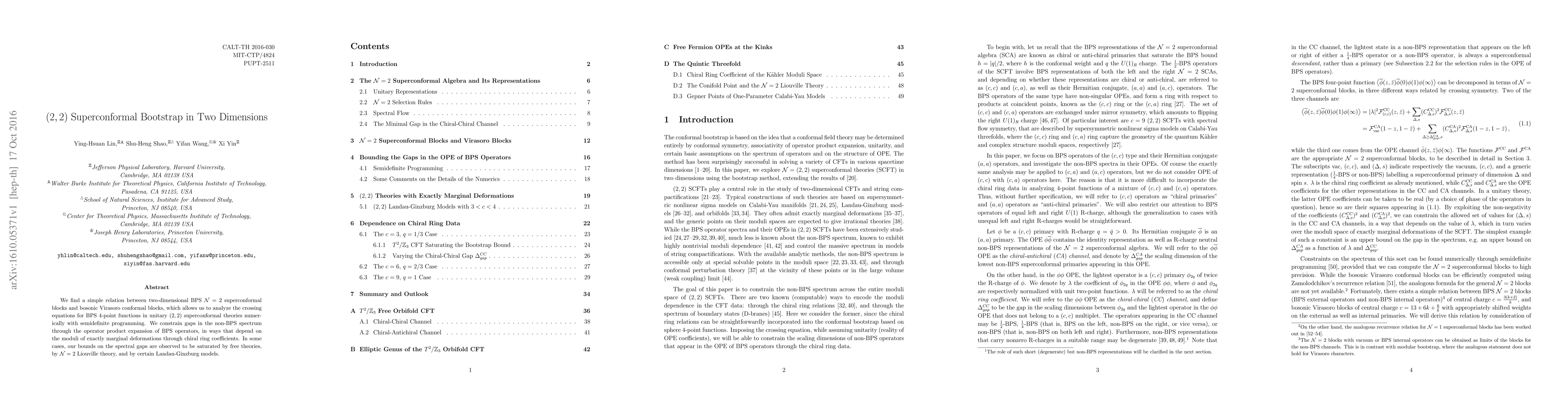 We find a simple relation between two-dimensional BPS N=2 superconformal blocks and bosonic Virasoro conformal blocks, which allows us to analyze the crossing equations for BPS 4-point functions in unitary (2,2) superconformal theories numerically with semidefinite programming. We constrain gaps in the non-BPS spectrum through the operator product expansion of BPS operators, in ways that depend on the moduli of exactly marginal deformations through chiral ring coefficients. In some cases, our bounds on the spectral gaps are observed to be saturated by free theories, by N=2 Liouville theory, and by certain Landau-Ginzburg models.