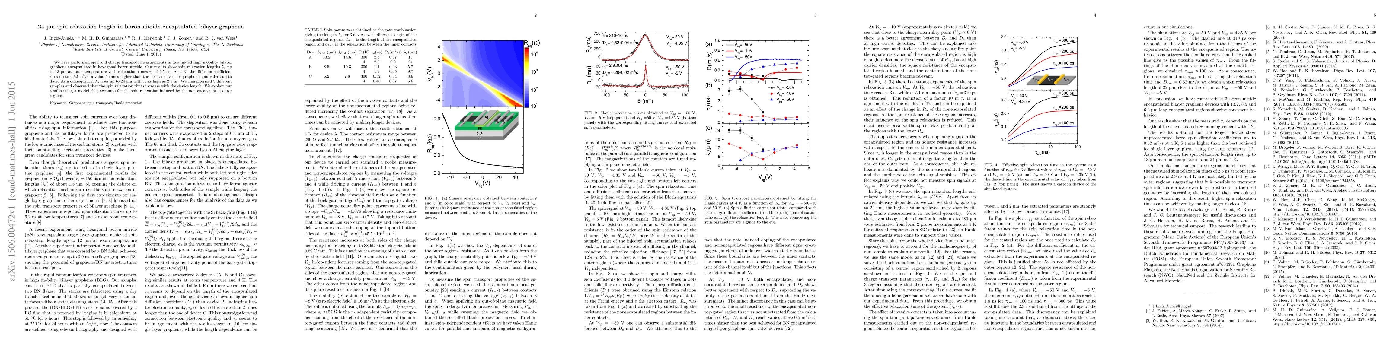 This study investigates spin relaxation in boron nitride-encapsulated bilayer graphene, finding spin relaxation lengths up to 24 μm at 4 K, significantly higher than previously reported values. The model used explains the observed increase in spin relaxation times with device length, attributing it to spin relaxation from non-encapsulated outer regions.