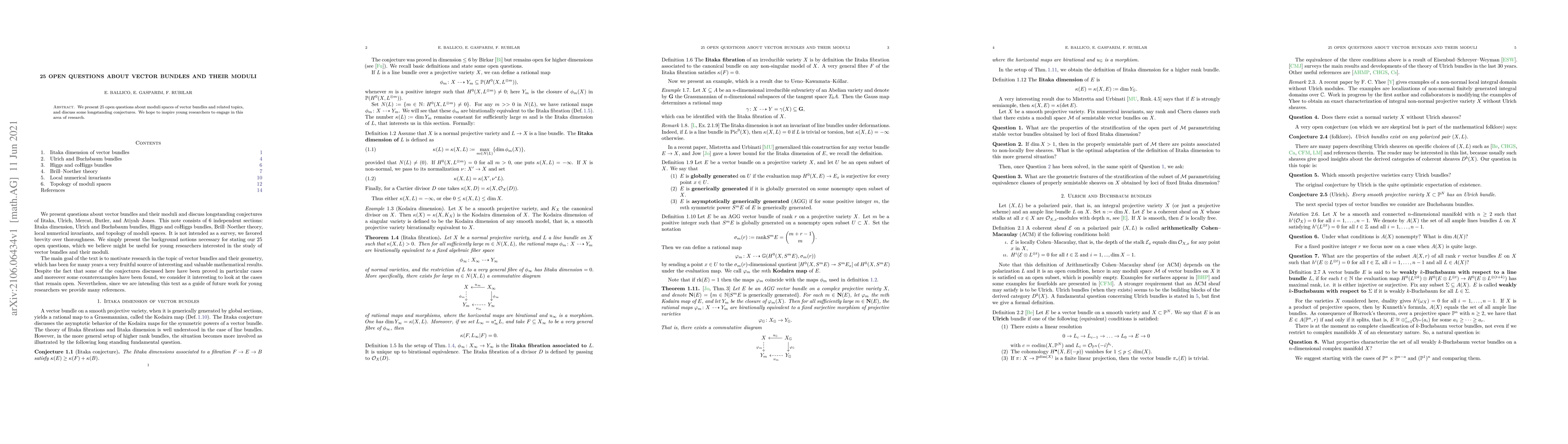 This paper presents 25 open questions regarding the moduli spaces of vector bundles and related conjectures, aiming to stimulate interest and research among young scholars in this mathematical field.