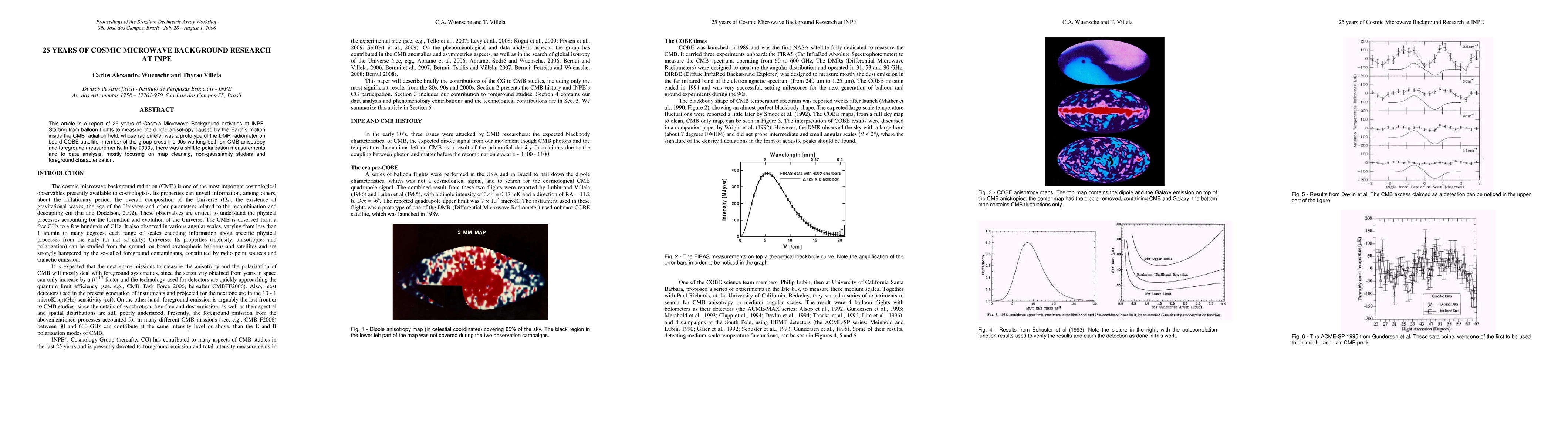 This article is a report of 25 years of Cosmic Microwave Background activities at INPE. Starting from balloon flights to measure the dipole anisotropy caused by the Earth's motion inside the CMB radiation field, whose radiometer was a prototype of the DMR radiometer on board COBE satellite, member of the group cross the 90s working both on CMB anisotropy and foreground measurements. In the 2000s, there was a shift to polarization measurements and to data analysis, mostly focusing on map cleaning, non-gaussianity studies and foreground characterization.
