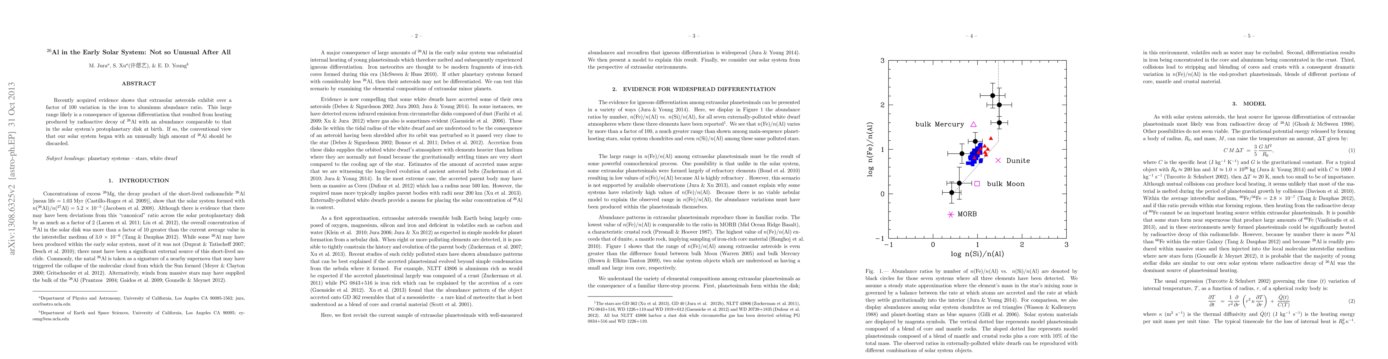 Recently acquired evidence shows that extrasolar asteroids exhibit over a factor of 100 variation in the iron to aluminum abundance ratio. This large range likely is a consequence of igneous differentiation that resulted from heating produced by radioactive decay of 26Al with an abundance comparable to that in the solar system's protoplanetary disk at birth. If so, the conventional view that our solar system began with an unusually high amount of 26Al should be discarded.
