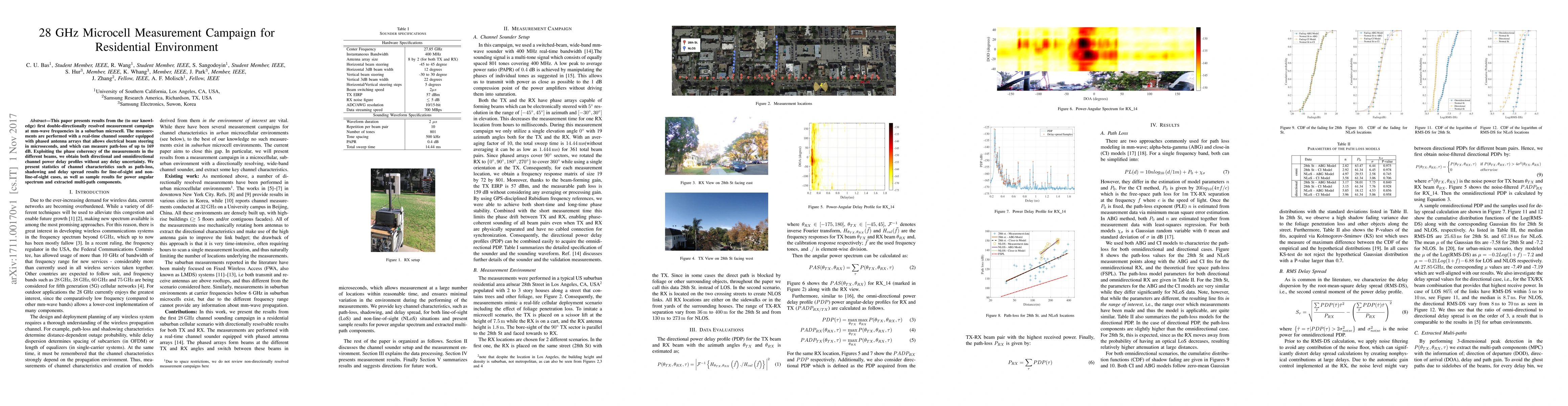 This paper presents results from the (to our knowledge) first double-directionally resolved measurement campaign at mm-wave frequencies in a suburban microcell. The measurements are performed with a real-time channel sounder equipped with phased antenna arrays that allows electrical beam steering in microseconds, and which can measure path-loss of up to 169 dB. Exploiting the phase coherency of the measurements in the different beams, we obtain both directional and omnidirectional channel power delay profiles without any delay uncertainty. We present statistics of channel characteristics such as path-loss, shadowing and delay spread results for line-of-sight and non-line-of-sight cases, as well as sample results for power angular spectrum and extracted multi-path components.