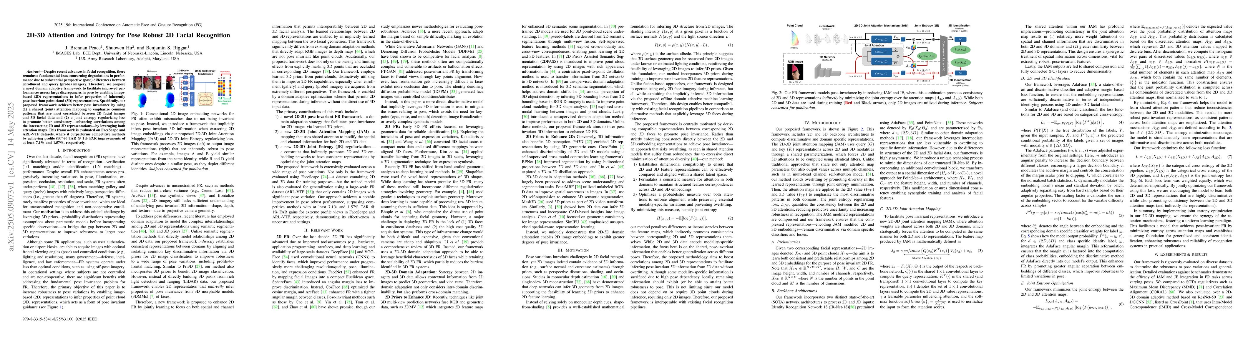 A new framework for 2D facial recognition improves performance by leveraging attention and entropy to adapt to large pose discrepancies between enrollment and query images.