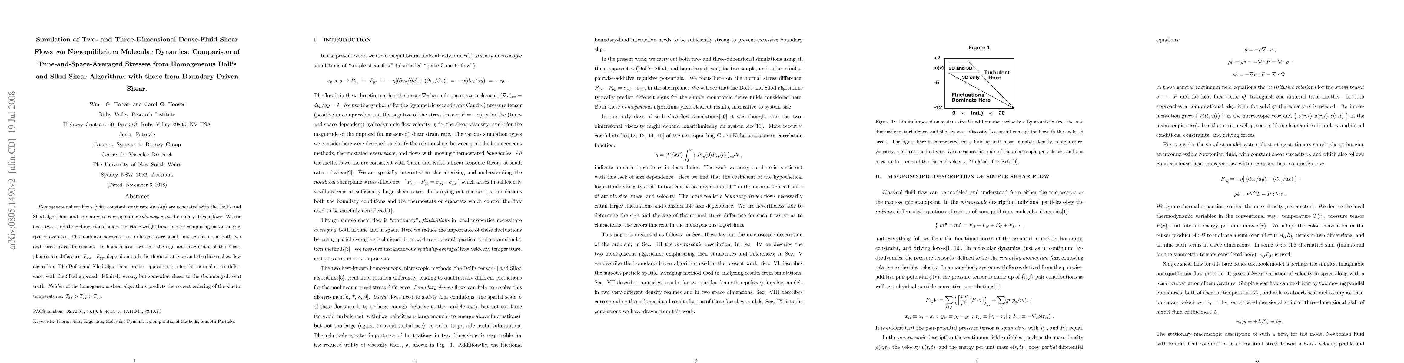 Homogeneous shear flows (with constant strainrate du/dy) are generated with the Doll's and Sllod algorithms and compared to corresponding inhomogeneous boundary-driven flows. We use one-, two-, and three-dimensional smooth-particle weight functions for computing instantaneous spatial averages. The nonlinear stress differences are small, but significant, in both two and three space dimensions. In homogeneous systems the sign and magnitude of the shearplane stress difference, P(xx) - P(yy), depend on both the thermostat type and the chosen shearflow algorithm. The Doll's and Sllod algorithms predict opposite signs for this stress difference, with the Sllod approach definitely wrong, but somewhat closer to the (boundary-driven) truth. Neither of the homogeneous shear algorithms predicts the correct ordering of the kinetic temperatures, T(xx) > T(zz) > T(yy).
