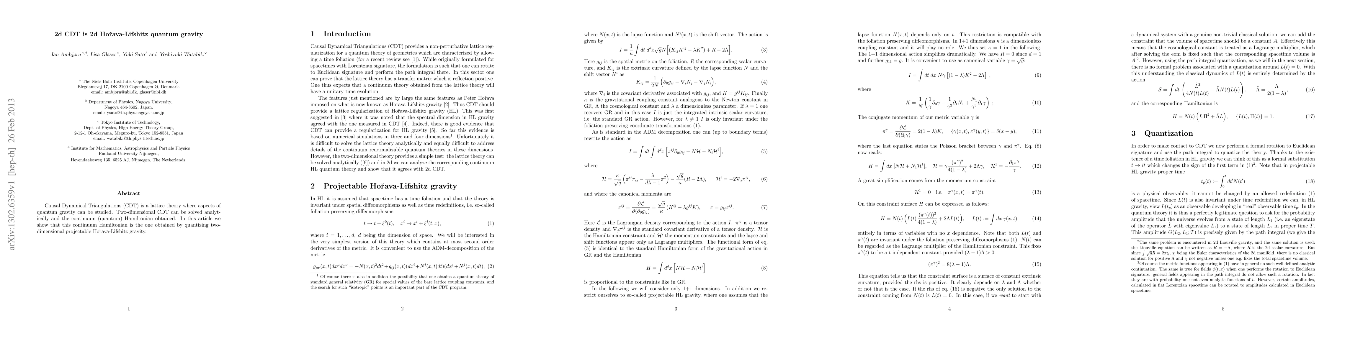 This paper demonstrates that the continuum Hamiltonian derived from two-dimensional Causal Dynamical Triangulations (CDT) matches that of two-dimensional projectable Horava-Lifshitz quantum gravity, establishing a connection between these two approaches to quantum gravity.