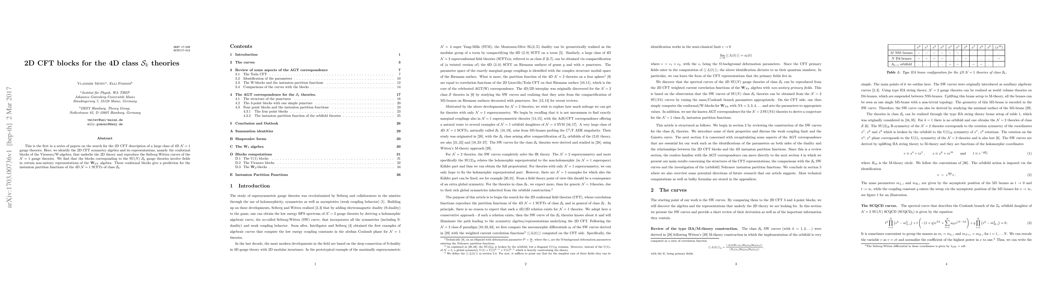 This paper identifies the 2D CFT symmetry algebra and its representations, specifically conformal blocks of the Virasoro/W-algebra, that describe 4D $\mathcal{N} = 1$ gauge theories. It finds that SU(N) $\mathcal{S}_k$ gauge theories involve non-unitary representations of the $W_{kN}$ algebra, predicting instanton partition functions for 4D $\mathcal{N} = 1$ SCFTs of class $\mathcal{S}_k$.