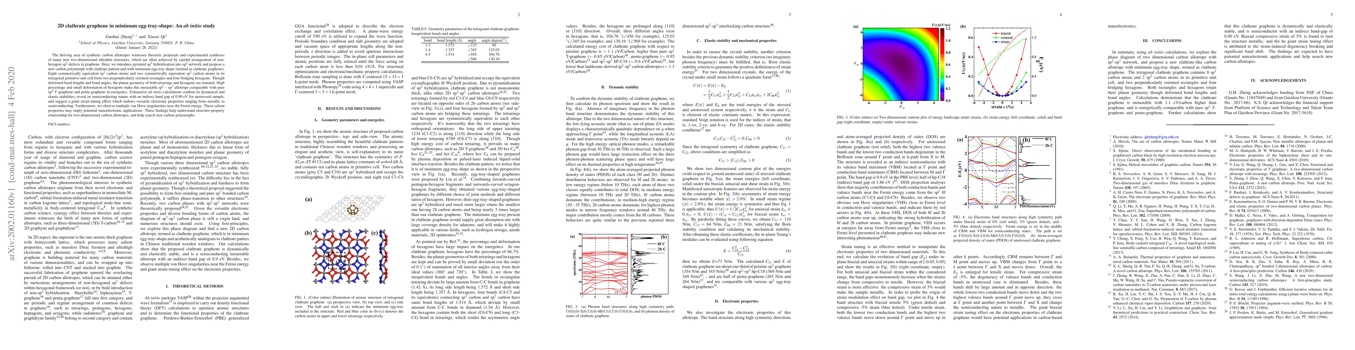 The thriving area of synthetic carbon allotropes witnesses theoretic proposals and experimental syntheses of many new two-dimensional ultrathin structures, which are often achieved by careful arrangement of non-hexagon $\mathrm{sp^2}$ defects in graphene. Here, we introduce pyramid $\mathrm{sp^3}$ hybridization into $\mathrm{sp^2}$ network and propose a new carbon polymorph with clathrate pattern and with minimum egg-tray shape (termed as clathrate graphene). Eight symmetrically equivalent $\mathrm{sp^2}$ carbon atoms and two symmetrically equivalent $\mathrm{sp^2}$ carbon atoms in its tetragonal primitive unit cell form two perpendicularly oriented rectangles and four bridging hexagons. Though deformed bond lengths and bond angles, the planar geometry of both tetrarings and hexagons are retained. High percentage and small deformation of hexagons make this metastable $\mathrm{sp^2}$-$\mathrm{sp^3}$ allotrope comparable with pure $\mathrm{sp^2}$ $T$-graphene and penta-graphene in energetics. Exhaustive \textit{ab initio} calculations confirm its dynamical and elastic stabilities, reveal its semiconducting nature with an indirect band gap of 0.90 eV for unstressed sample, and suggest a giant strain tuning effect which endows versatile electronic properties ranging from metallic to semiconducting. Furthermore, we observe multiple von Hove singularities near the Fermi energy.These salient properties may imply potential nanoelectronic applications. These findings help understand structure-property relationship for two-dimensional carbon allotropes, and help search new carbon polymorphs.