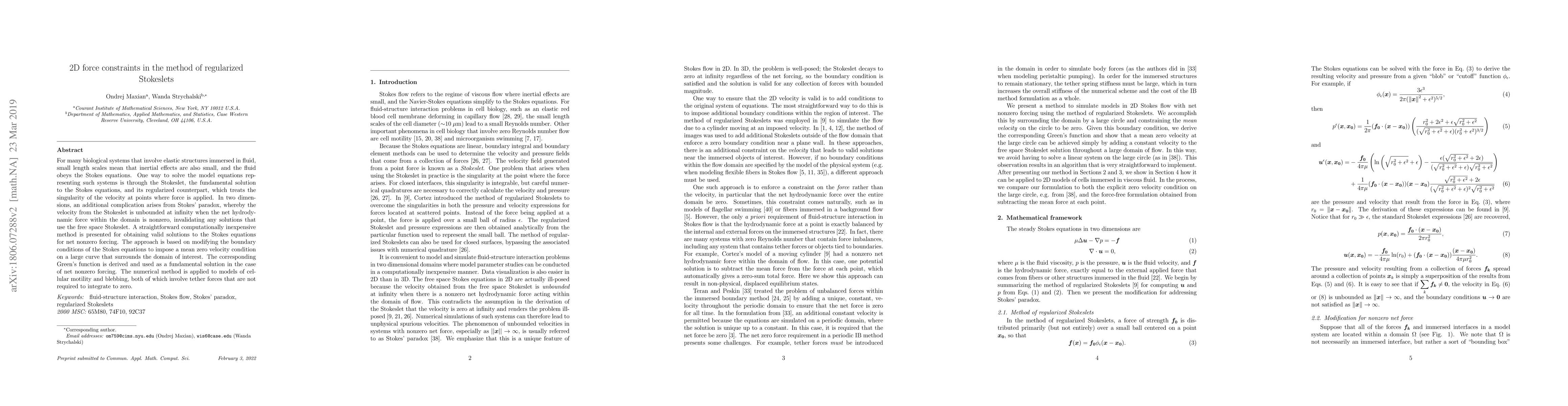 For many biological systems that involve elastic structures immersed in fluid, small length scales mean that inertial effects are also small, and the fluid obeys the Stokes equations. One way to solve the model equations representing such systems is through the Stokeslet, the fundamental solution to the Stokes equations, and its regularized counterpart, which treats the singularity of the velocity at points where force is applied. In two dimensions, an additional complication arises from Stokes' paradox, whereby the velocity from the Stokeslet is unbounded at infinity when the net hydrodynamic force within the domain is nonzero, invalidating the solutions. A straightforward computationally inexpensive method is presented for obtaining valid solutions to the Stokes equations for net nonzero forcing. The approach is based on imposing a mean zero velocity condition on a large curve that surrounds the domain of interest. The condition is shown to be equivalent to a net-zero force condition, where the opposite forces are applied on the large curve. The numerical method is applied to models of cellular motility and blebbing.