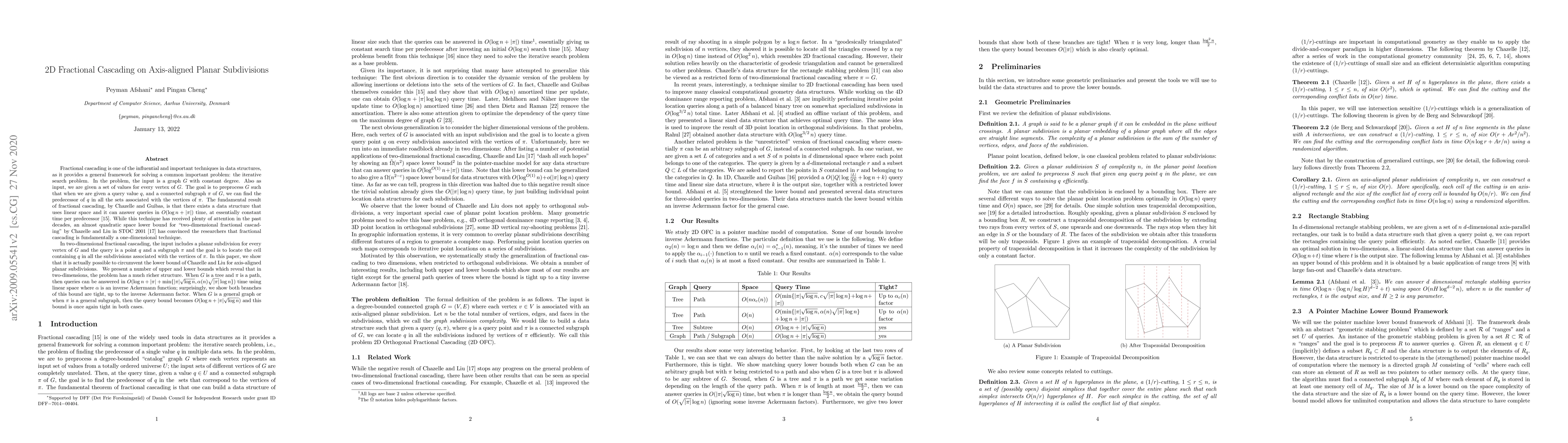Researchers have found a way to improve 2D fractional cascading on axis-aligned planar subdivisions, achieving time complexities of $O(rac{n}{ heta} imes au(rac{| ho|}{n}))$ for certain cases, where $ heta$ is the tree height, $| ho|$ is the path length, and $ au$ is the Ackermann function.