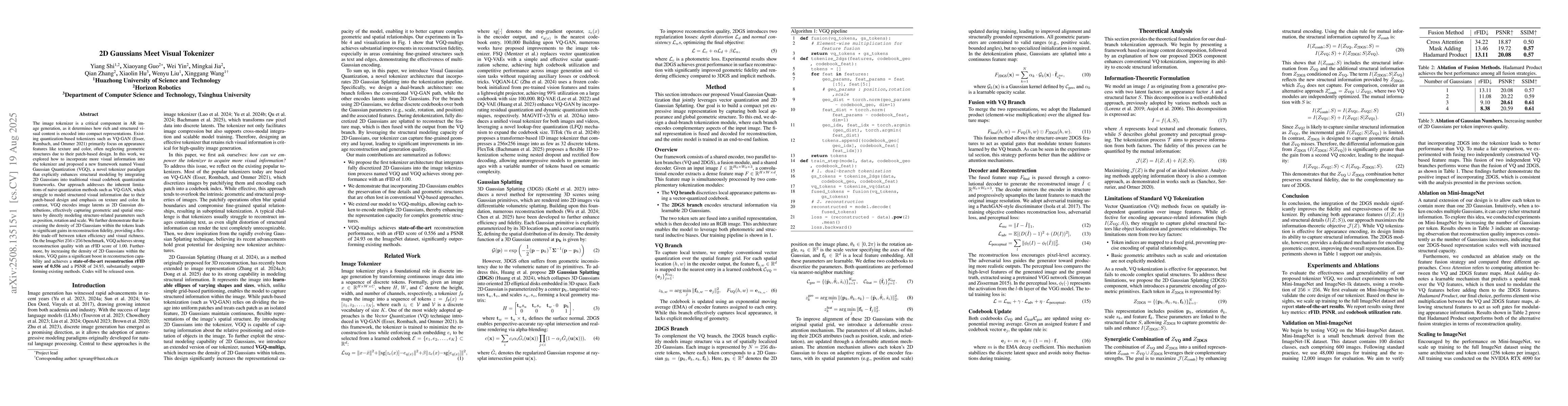 The image tokenizer is a critical component in AR image generation, as it determines how rich and structured visual content is encoded into compact representations. Existing quantization-based tokenizers such as VQ-GAN primarily focus on appearance features like texture and color, often neglecting geometric structures due to their patch-based design. In this work, we explored how to incorporate more visual information into the tokenizer and proposed a new framework named Visual Gaussian Quantization (VGQ), a novel tokenizer paradigm that explicitly enhances structural modeling by integrating 2D Gaussians into traditional visual codebook quantization frameworks. Our approach addresses the inherent limitations of naive quantization methods such as VQ-GAN, which struggle to model structured visual information due to their patch-based design and emphasis on texture and color. In contrast, VGQ encodes image latents as 2D Gaussian distributions, effectively capturing geometric and spatial structures by directly modeling structure-related parameters such as position, rotation and scale. We further demonstrate that increasing the density of 2D Gaussians within the tokens leads to significant gains in reconstruction fidelity, providing a flexible trade-off between token efficiency and visual richness. On the ImageNet 256x256 benchmark, VGQ achieves strong reconstruction quality with an rFID score of 1.00. Furthermore, by increasing the density of 2D Gaussians within the tokens, VGQ gains a significant boost in reconstruction capability and achieves a state-of-the-art reconstruction rFID score of 0.556 and a PSNR of 24.93, substantially outperforming existing methods. Codes will be released soon.